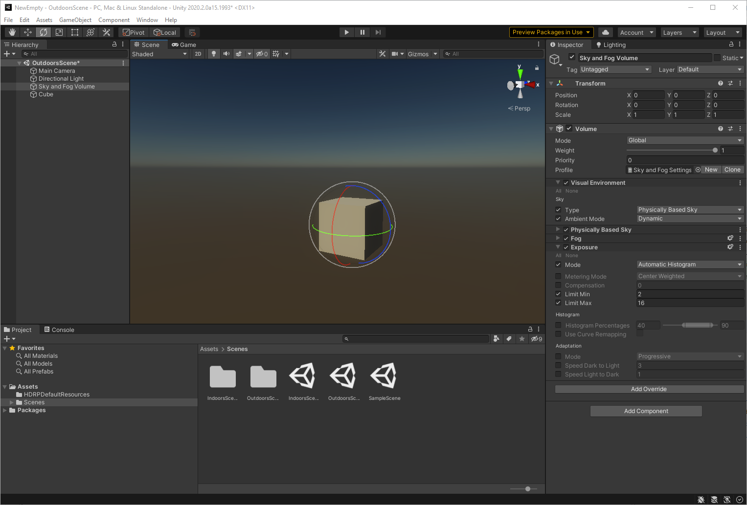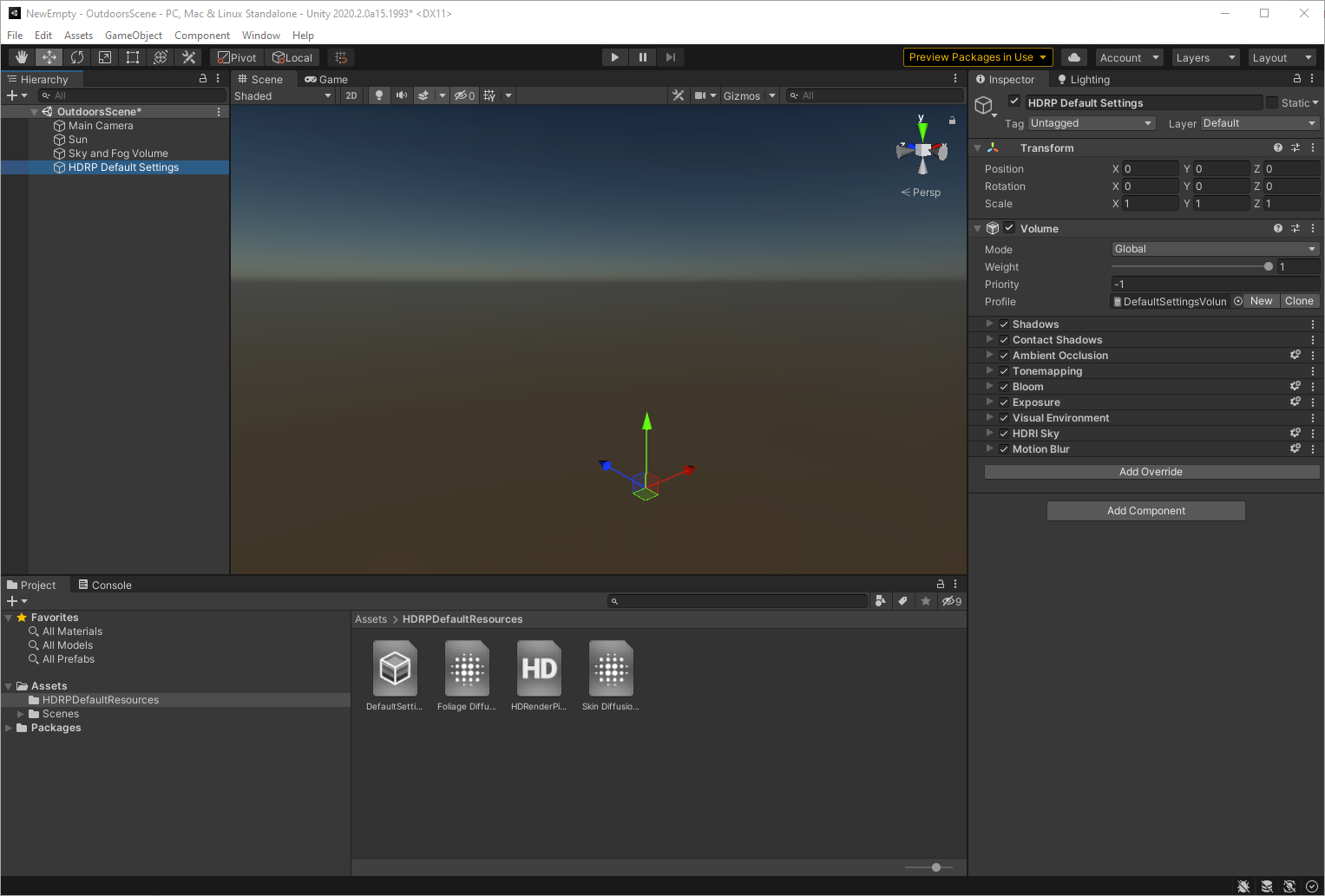 - Add HDRP default settings to the scene for discoverability. Effectively it wont do anything, but help people understand we have HDRP default settings applied. Priority -1