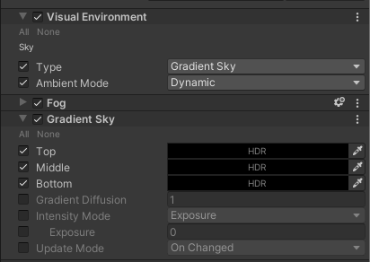 If I recall correctly, we had a lot of trouble with fog/volumetric fog when no sky was set in visual environment. (it was in 7.x package though) |
