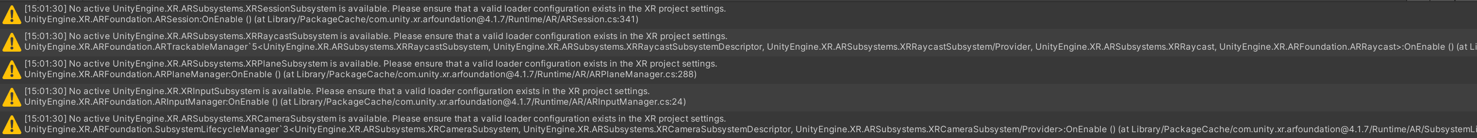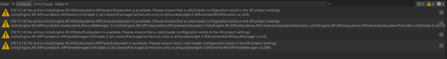 To clarify: the warnings are telling you that AR isn't going to work because the current platform is not supported by any of the packages you currently have installed. It does not impact any other functionality, so other than unwanted log messages, there is nothing to "fix". Are you suggesting a change to this behavior? |