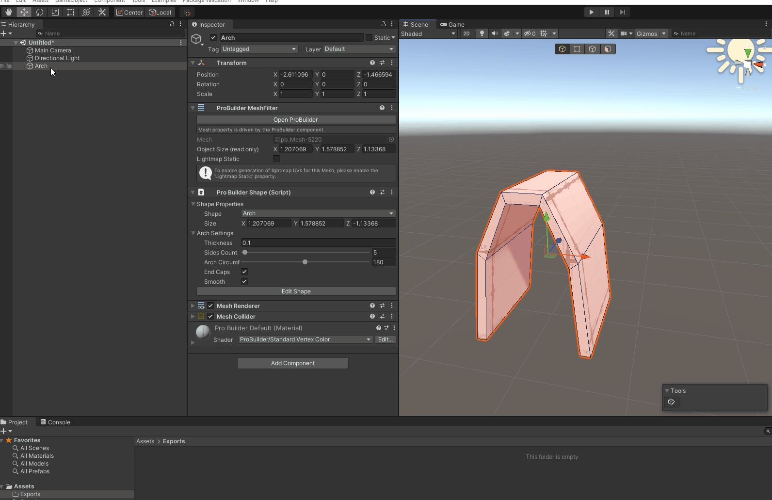 Fixing Probuilder mesh throwing errors with FBX Exporter due to the presence of ProBuilderShape that was not removed.