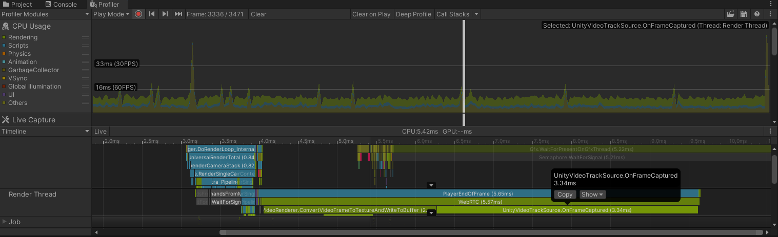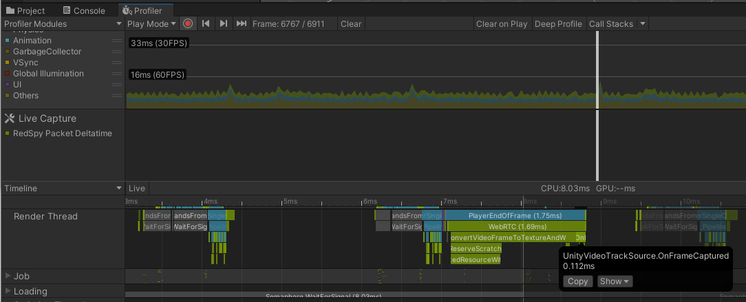 This PR fixes the native code of DX12 graphic device to improve performance of the rendering thread. I profiled the loads of the rendering thread, and compared two results. This comparison can show the performance improvement that reduces the loads of waiting time for command buffer to copy texture.