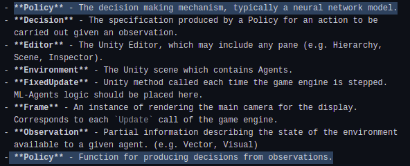 The Term "Policy" is duplicated in ML Agents Toolkit Glossary: