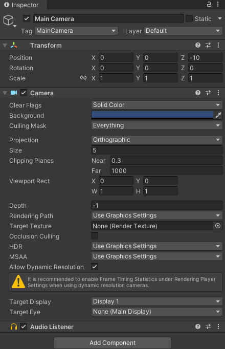 Camera.main.transform.position = new Vector3(center.x, center.y, -10);