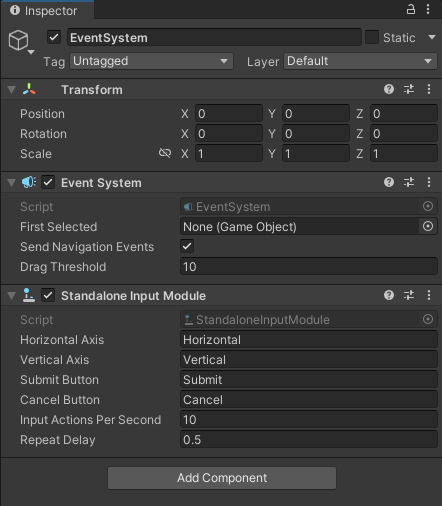_______Рис. 9.8 Настройка EventSystem
