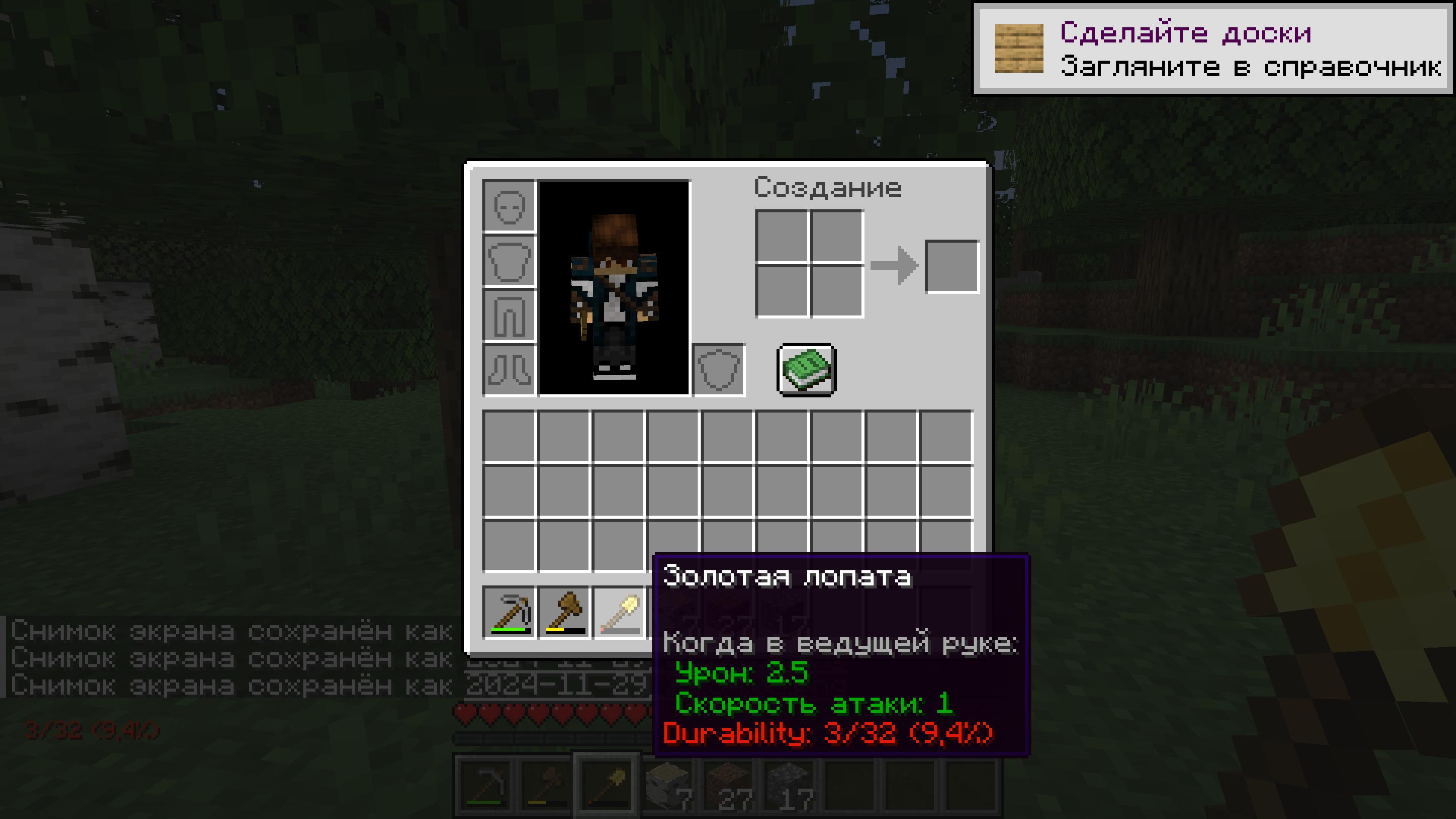 Forge: 49.1.0 Minecraft: 1.20.4 JDK: Java 17 Time: 22 minutes Отображает информацию о прочности предмета в карточке этого предмета, а также на экране в левом нижнем углу. NoteОтображение на экране NoteОтображение в карточке предмета