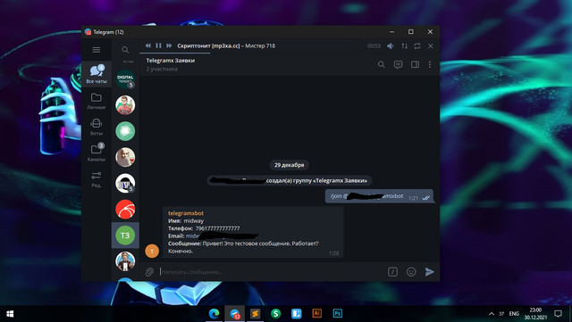 telegram.phpв поле$chat_id. Сохраняем файл. - Проверьте форму на ее работоспособность! В итоге у вас должно получится следующее.