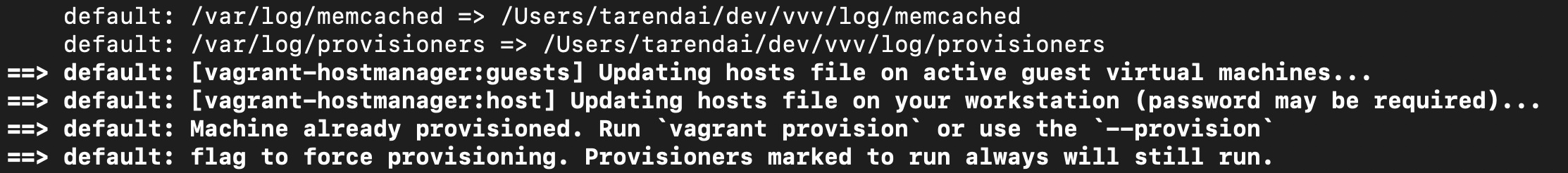 please note after doing some more test, if you do vagrant reload --provision if u have a new site that u added after the first vagrant up. it won't update the hosts file. the plugin for vagrant-hostmanager only hooks to vagrant up and vagrant destroy. |