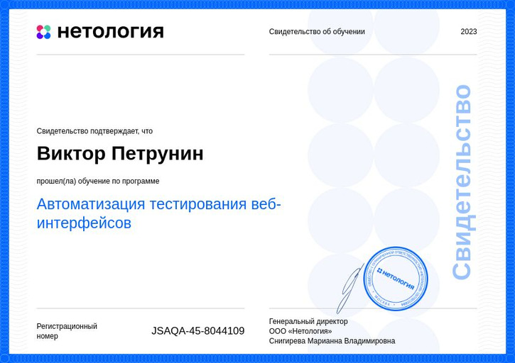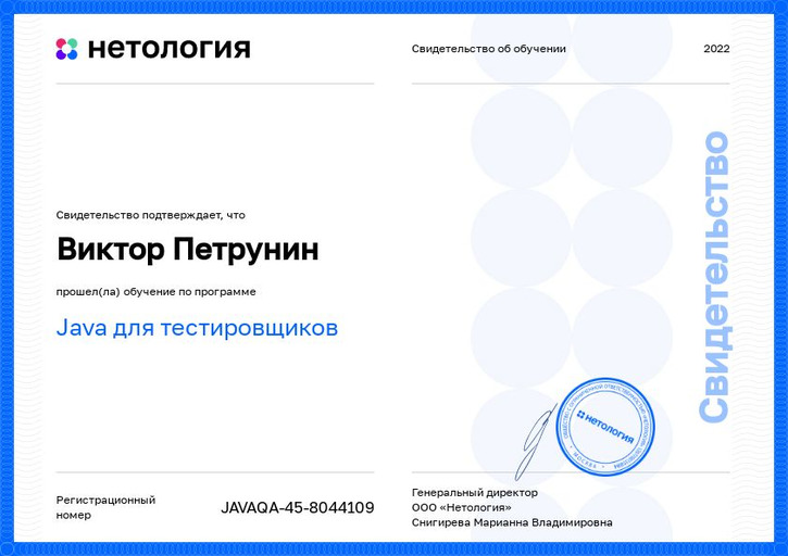 - Автотестирование веб-приложений на Java с использованием JUnit, Selenium, Selenide;