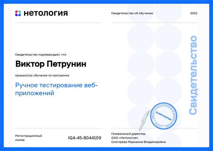 Я Виктор Петрунин, middle тестировщик программного обеспечения