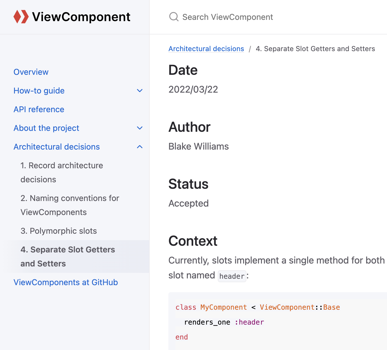Our ADRs are not easily discovered in the repo. I'm reorganizing the documentation into categories and adding a section for architectural decisions.
