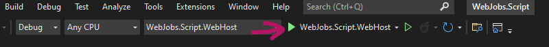 Once it is open, select Debug from the top menu bar and select WebJobs.Script.WebHost Debug Properties