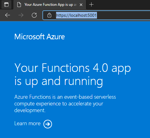After it is running it should automatically open a browser window which will show that your functions x.0 app is up and running.