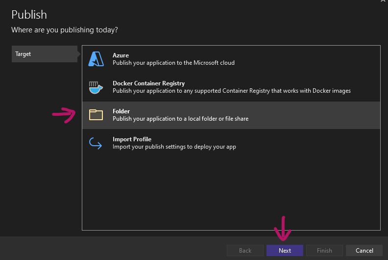 Rather then selecting the usual Azure, we will select Folder and click next.