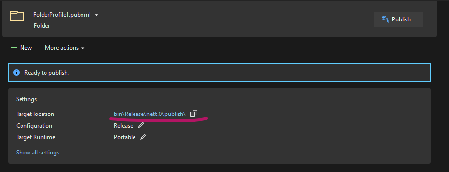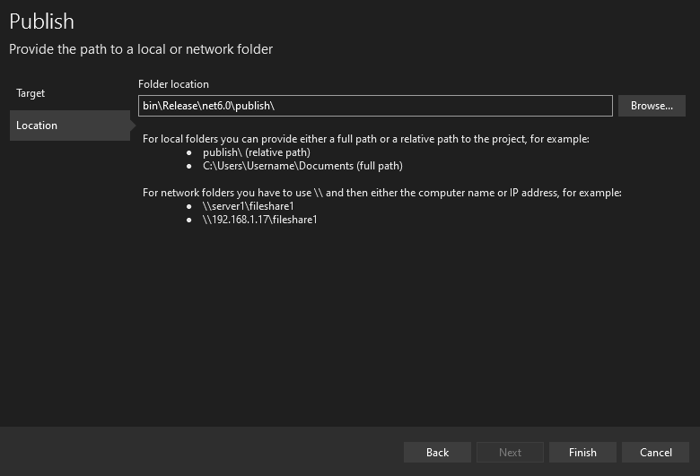 After it has successfully published you can click on the Target location link to open the location in a file explorer window.