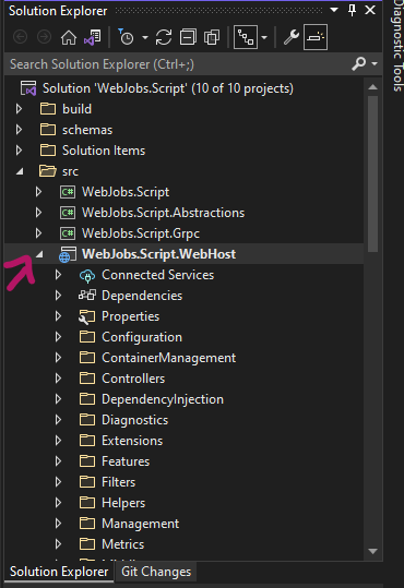 In the solution Explorer expand the WebJobs.Script.WebHost