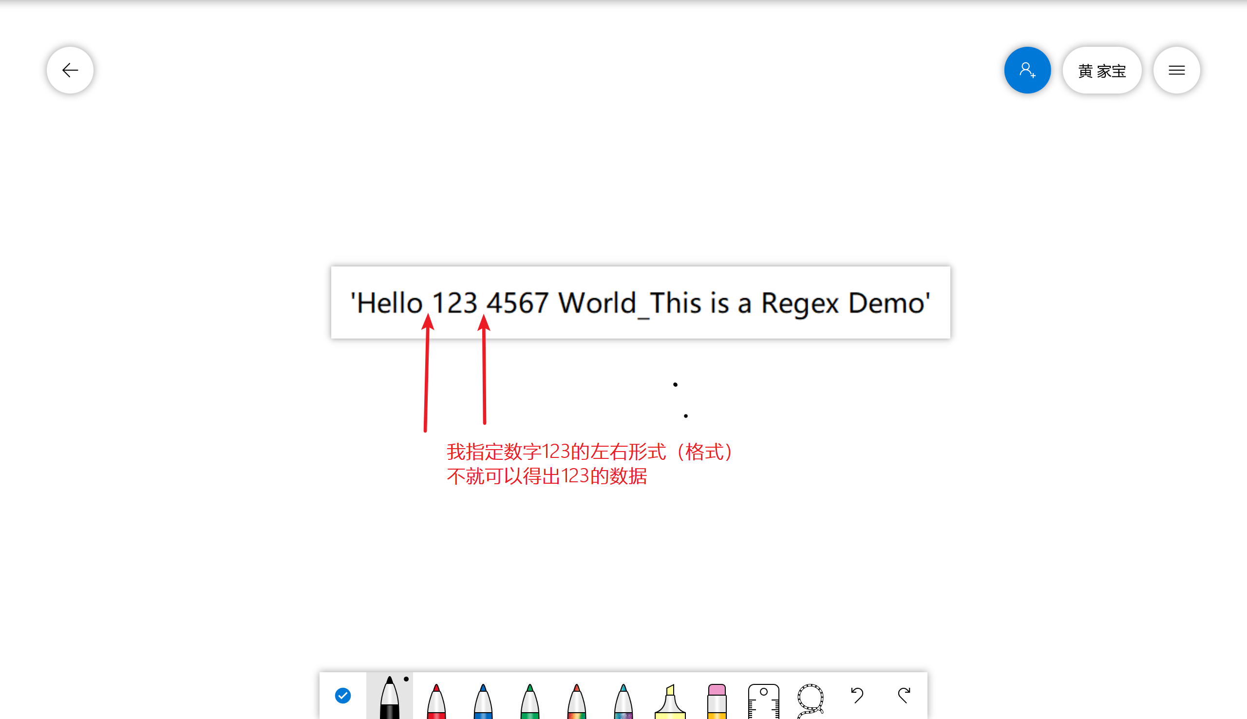 这里首先声明了一个字符串,其中包含英文字母、空白字符、数字等。接下来,我们写一个正则表达式: