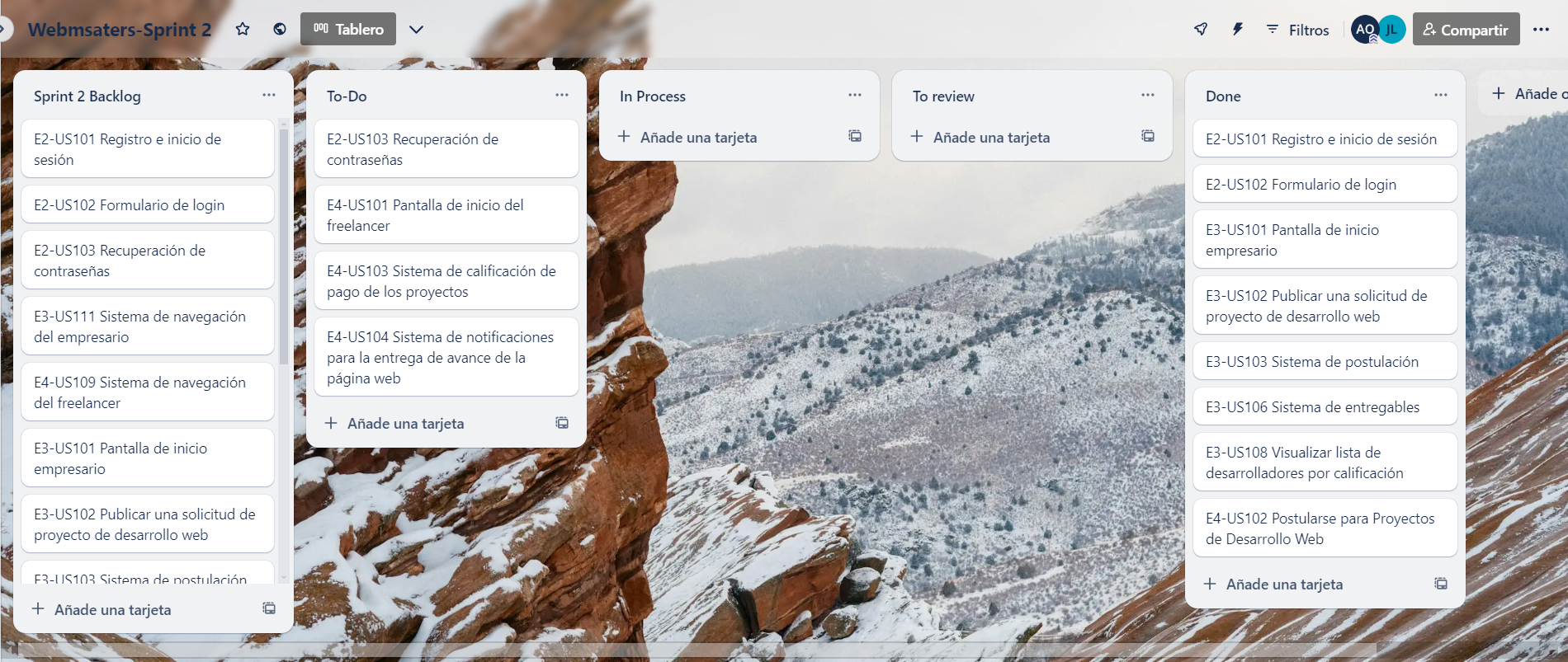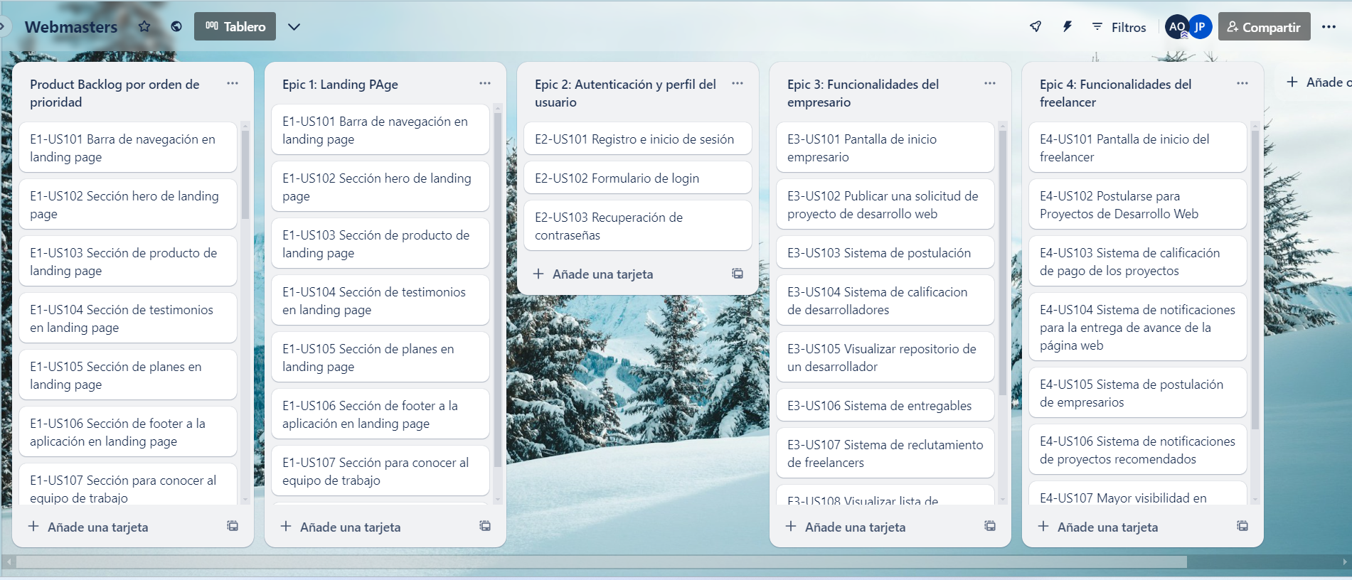 Control de proyectos Link de Trello: https://trello.com/b/CUnuKXxm/webmasters