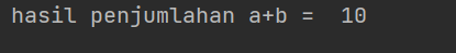 print("hasil penggabung {1}+{0}=%s".format(a,b) %(a+b))