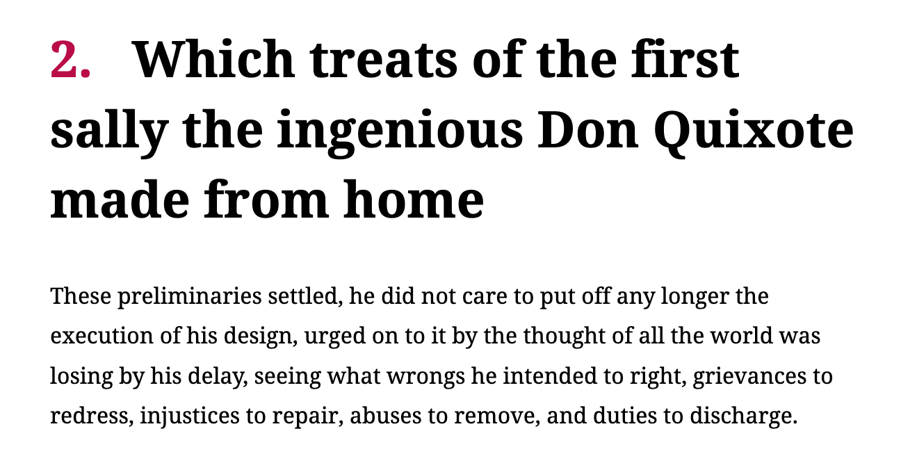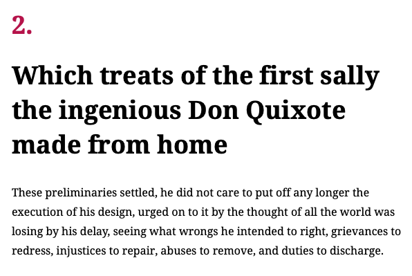 Thanks @kjellr I've updated it following your suggestion of adding a line break. Not sure why I didn't think of that! ;D Making the chapter number it's own block introduces a lot of space on some themes, particularly at that big of a size. I found it's less noticeable if we also use a heading block for the chapter number, but having two heading blocks one after the other introduces some semantic issues. So decided to go with your first suggestion. |