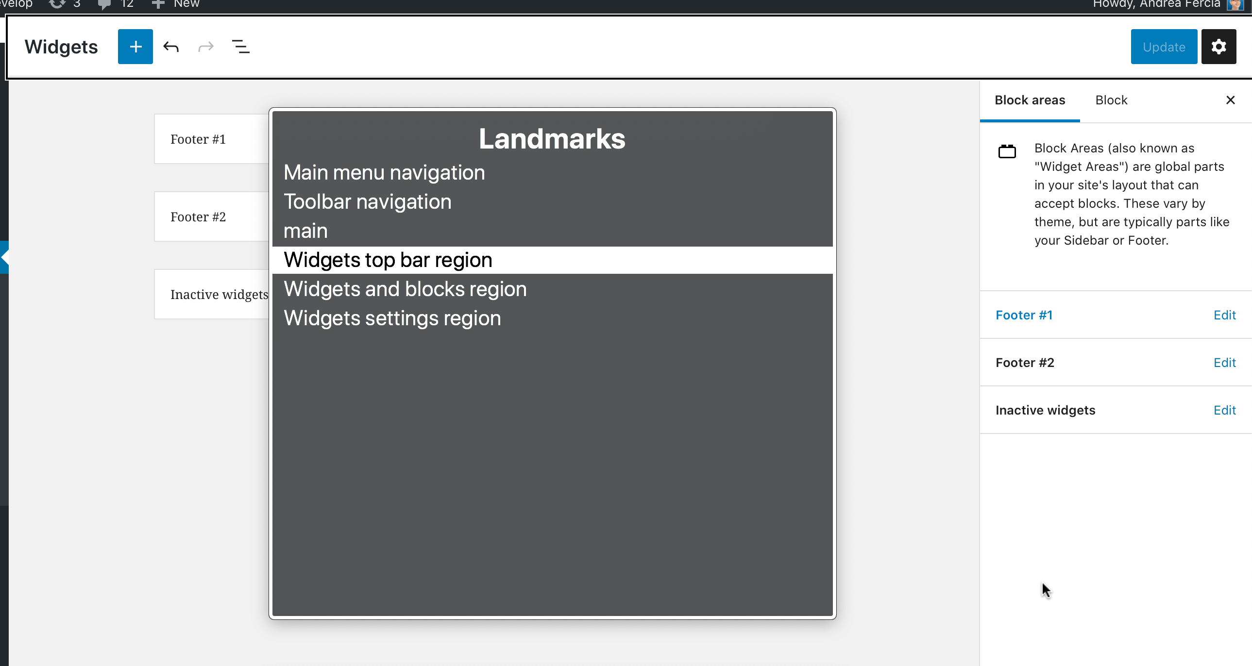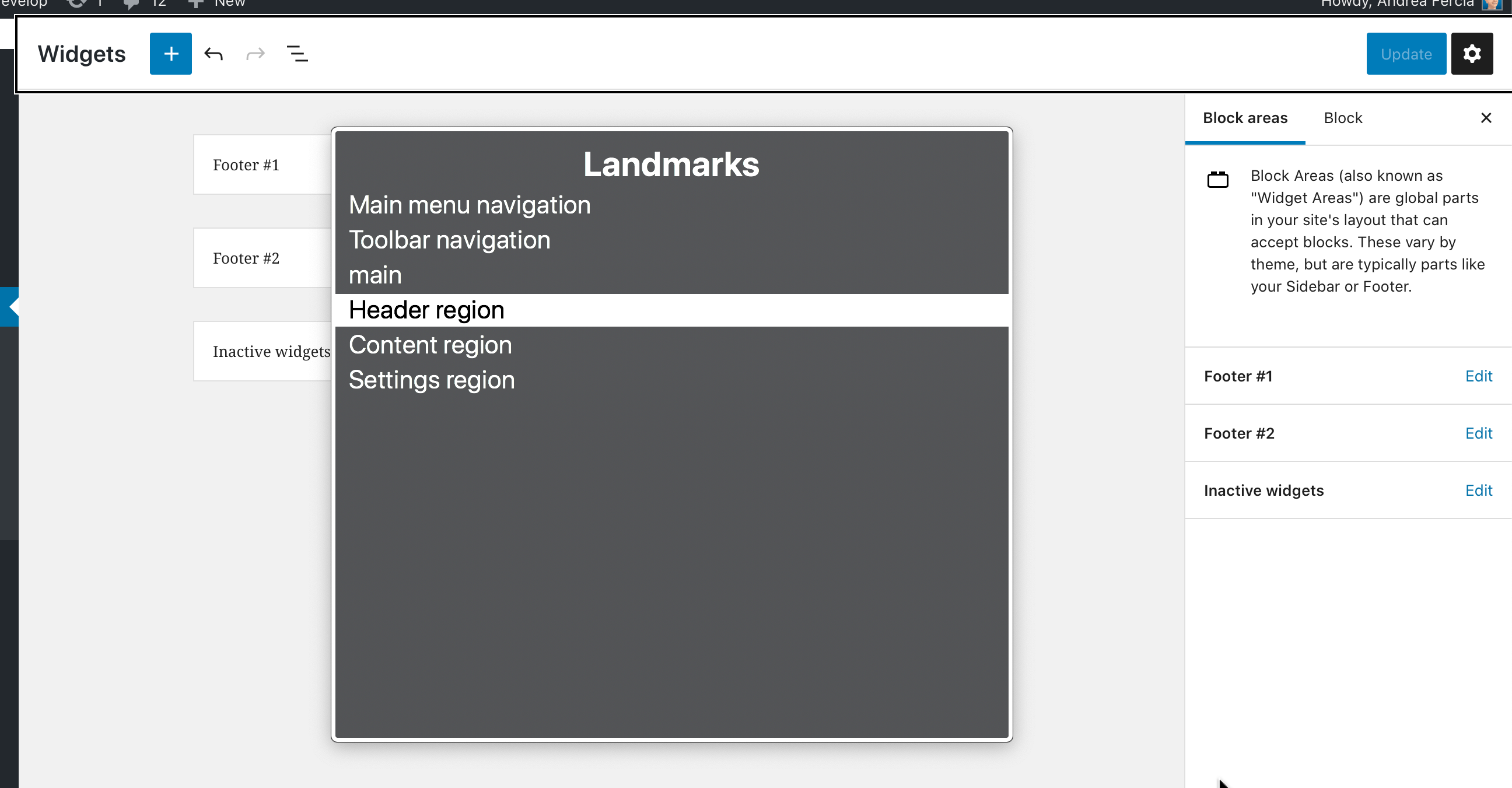 This tiny PR provides more meaningful names for the ARIA landmarks in the new Widgets screen by passing specific labels instead of relying on the defaults.