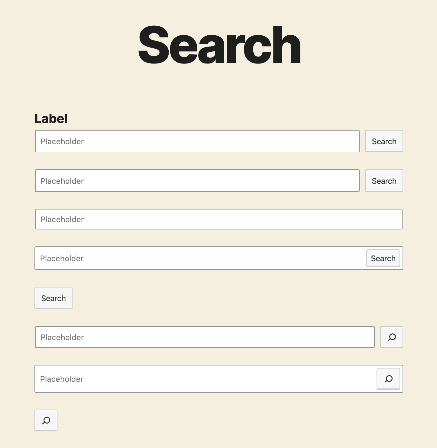 wp-block-search__icon-buttonis applied. This doesn't have any visual impact, but it's needed for theming purposes.wp-block-search__text-buttonis applied. This doesn't have any visual impact, but it's needed for theming purposes.Screenshots