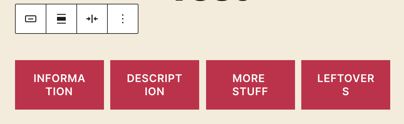 Add a Buttons block with several buttons and change their width using the width selector in the Inspector Controls.