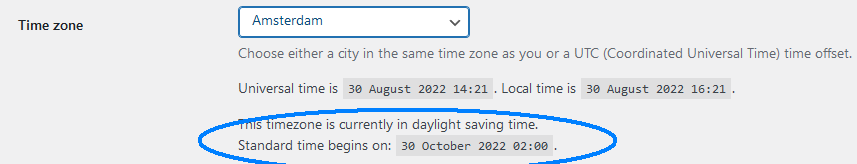 Underneath the time zone selector on the Options/General page, a small snippet of info about the selected time zone is displayed.