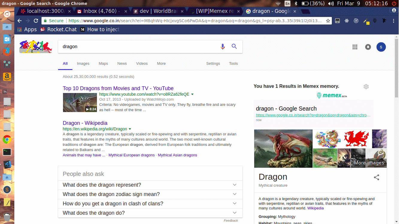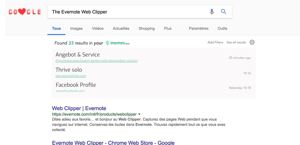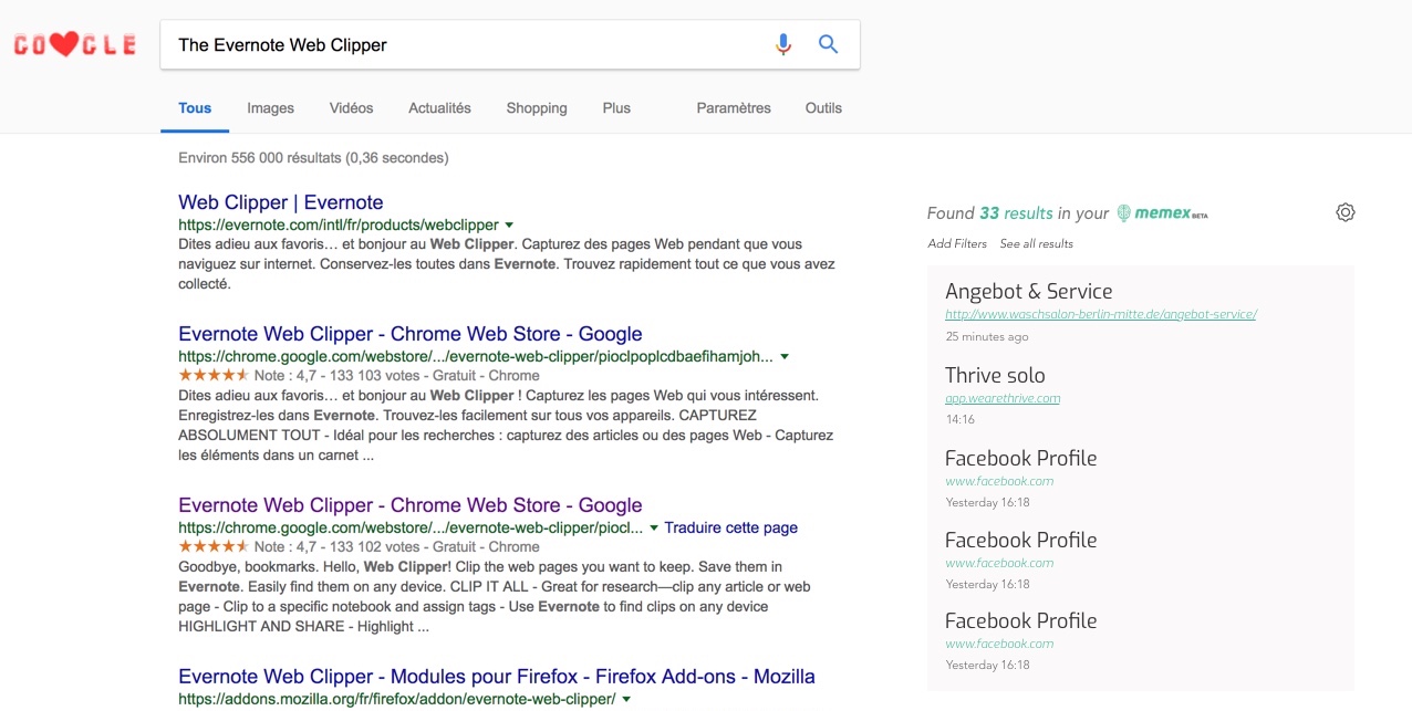 [WIP]Memex results alongside google search#323
