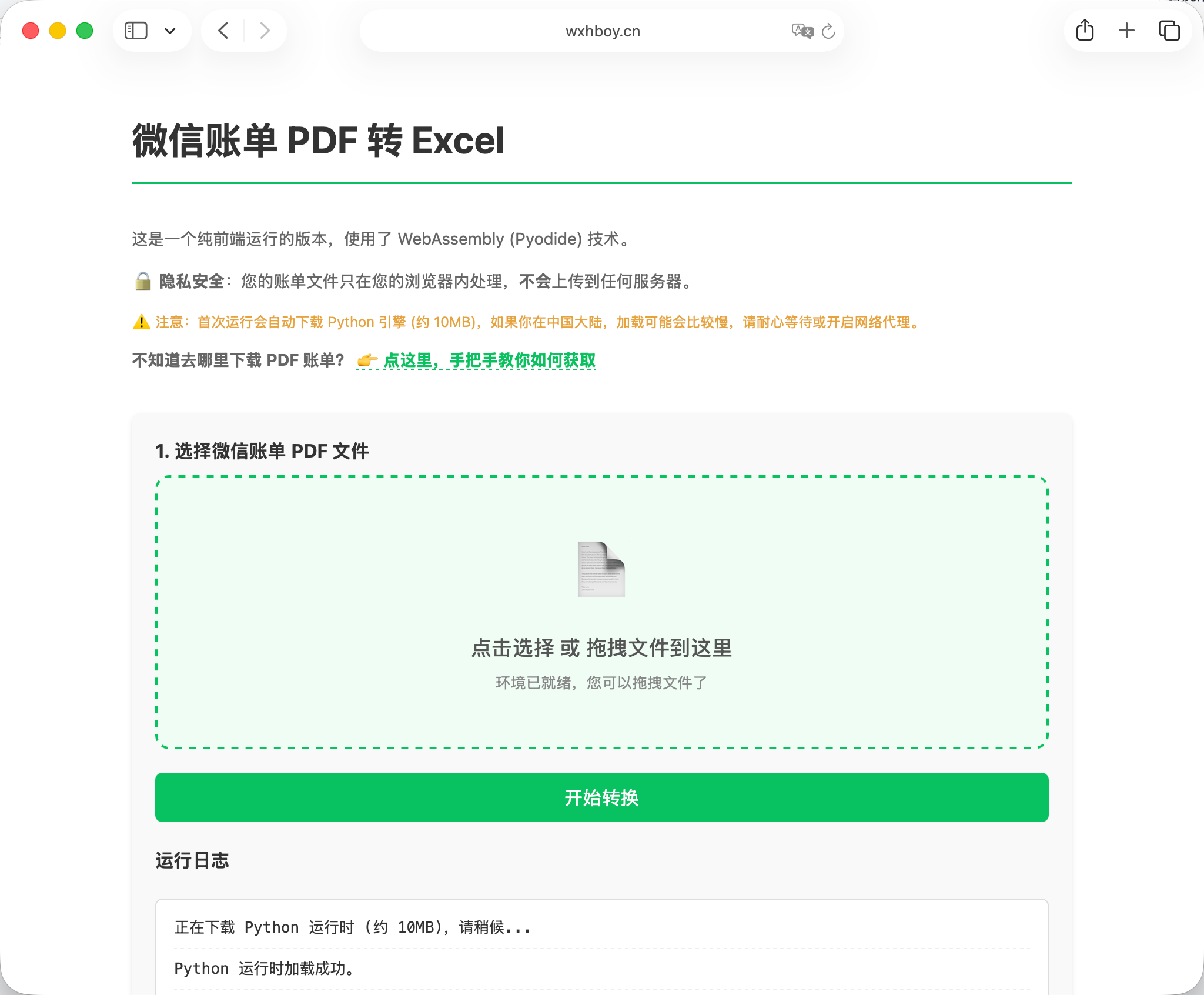 如果您不想配置本地环境,可以直接使用 Web 版。 它完全基于浏览器运行,所有数据处理均在您的设备本地完成,不会上传任何账单文件,确保您的财务隐私安全。