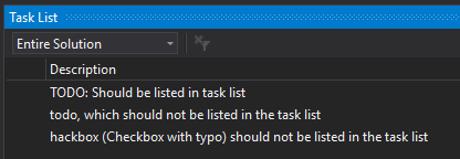 It seems, that every comment containing the substring Todo, Hack or Undone is added to the task list. But only comments beginning with Todo, Hack or Undone should be used.