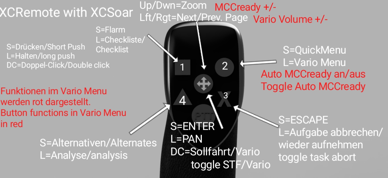 Stelle das XCVARIO unter SYSTEM>VARIO&S2F>S2F SETTINGS auf "EXTERNAL" um das XCVARIO komplett über deine XCREMOTE zu bedienen.