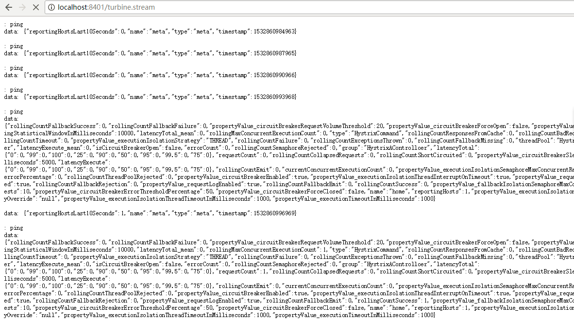 3.1 访问turbine.stream网页,能得到返回数据:http://localhost:8401/turbine.stream