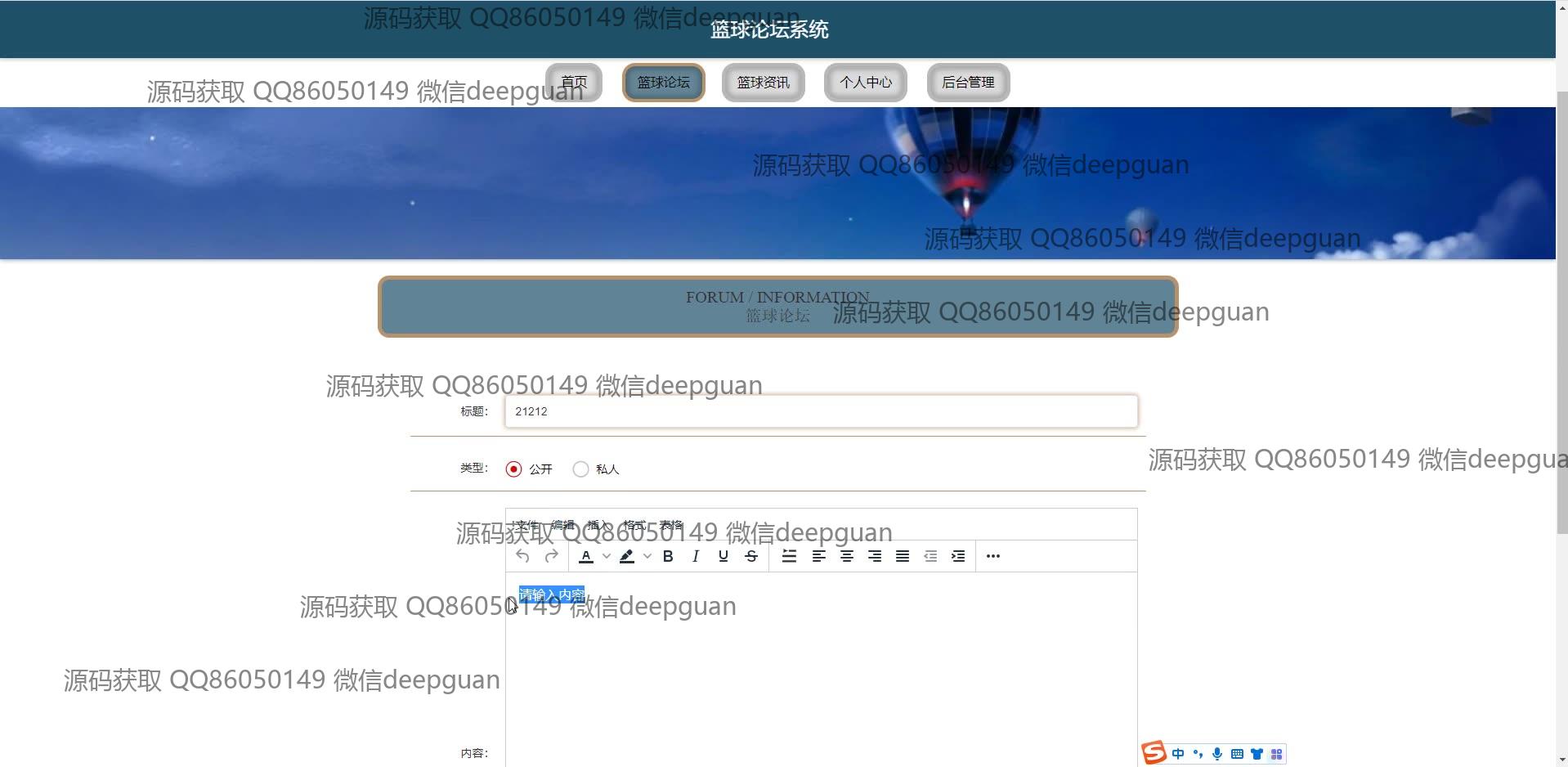 篮球论坛系统:提供功能包括用户注册与登录、论坛主题发布、资讯浏览与搜索、个人信息更新、图片上传、用户管理和后台系统管理。适用于篮球爱好者的交流与信息分享平台。 --计算机毕业设计源码;毕设源码;java毕业设计源码