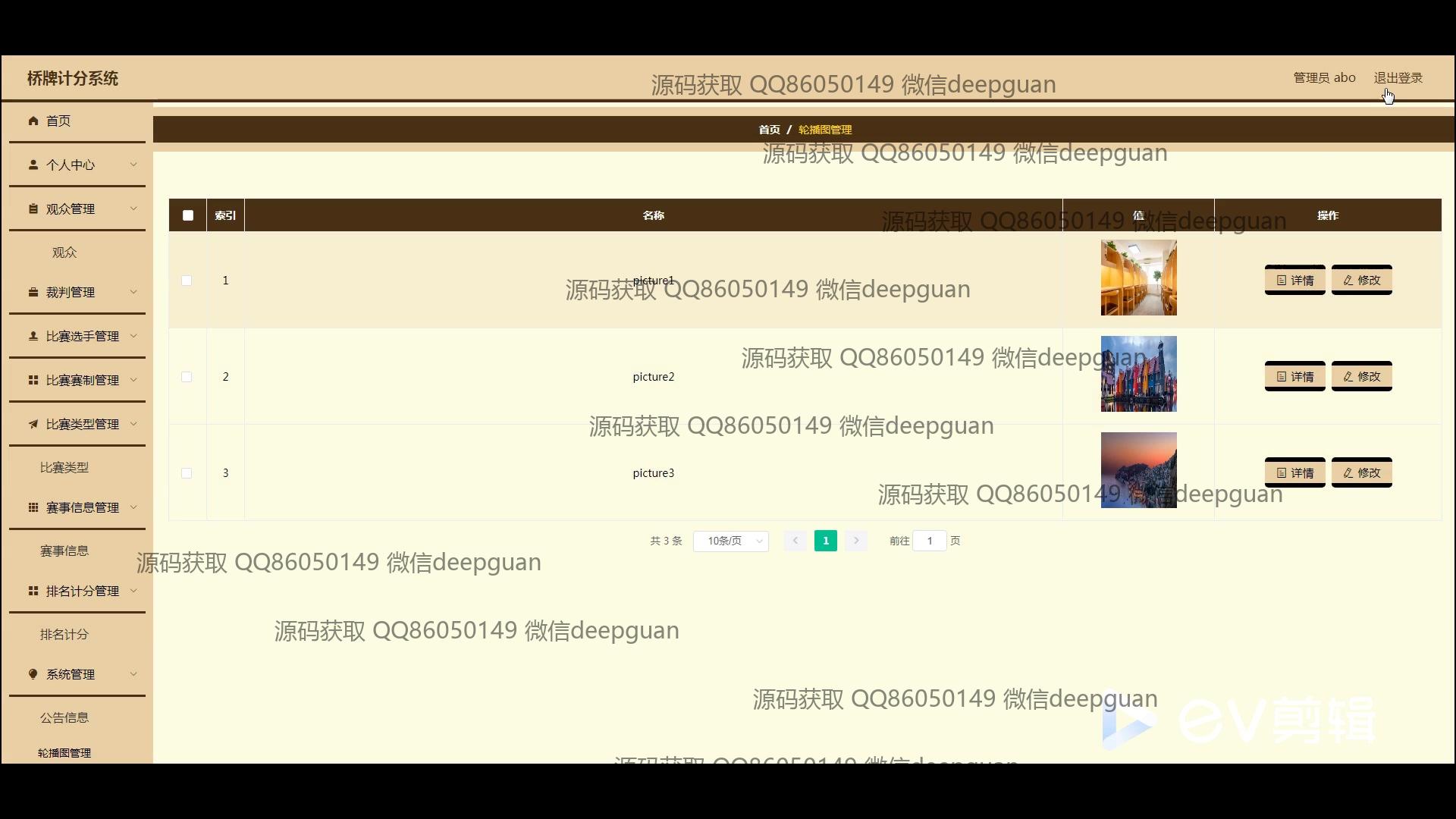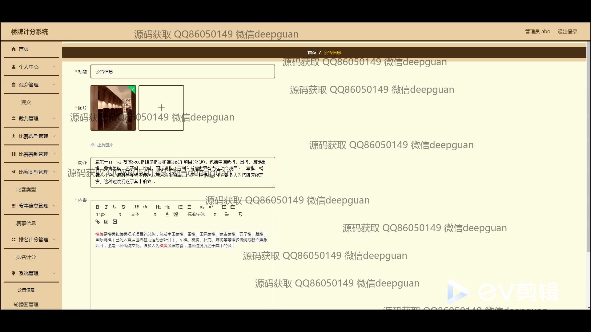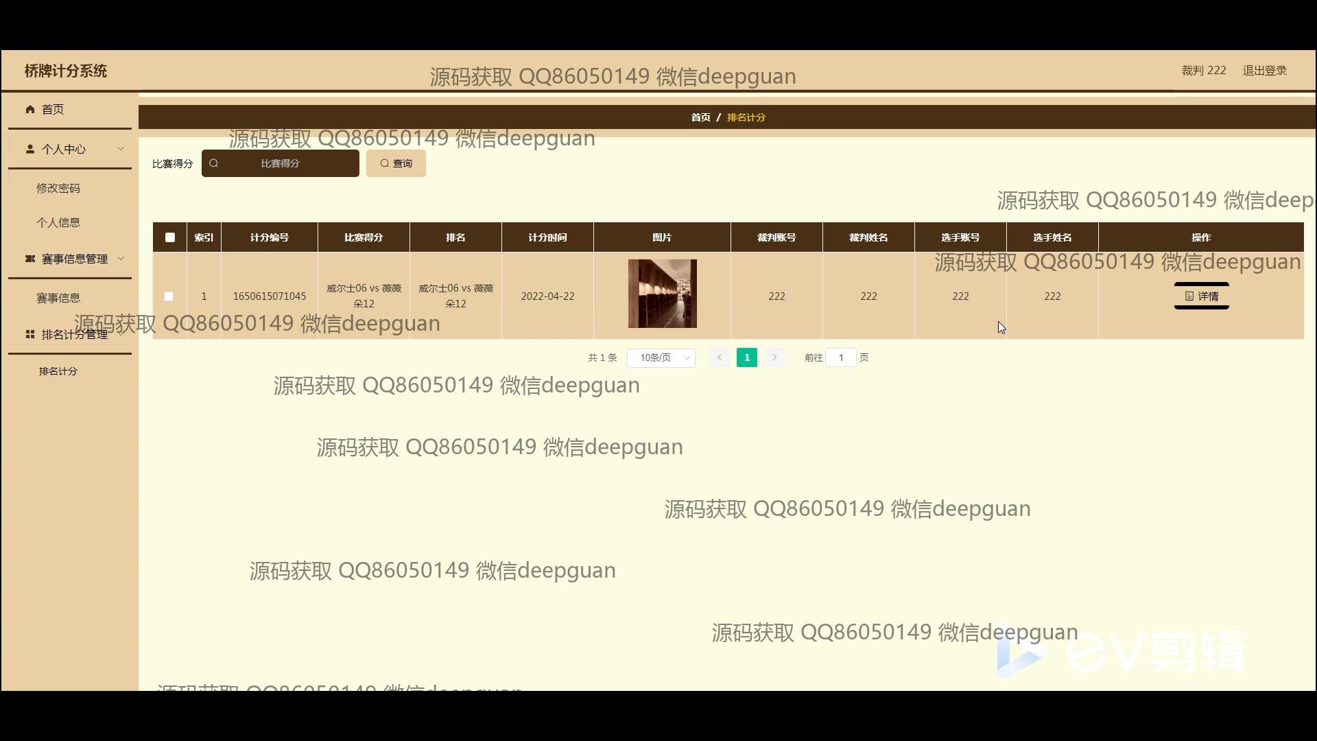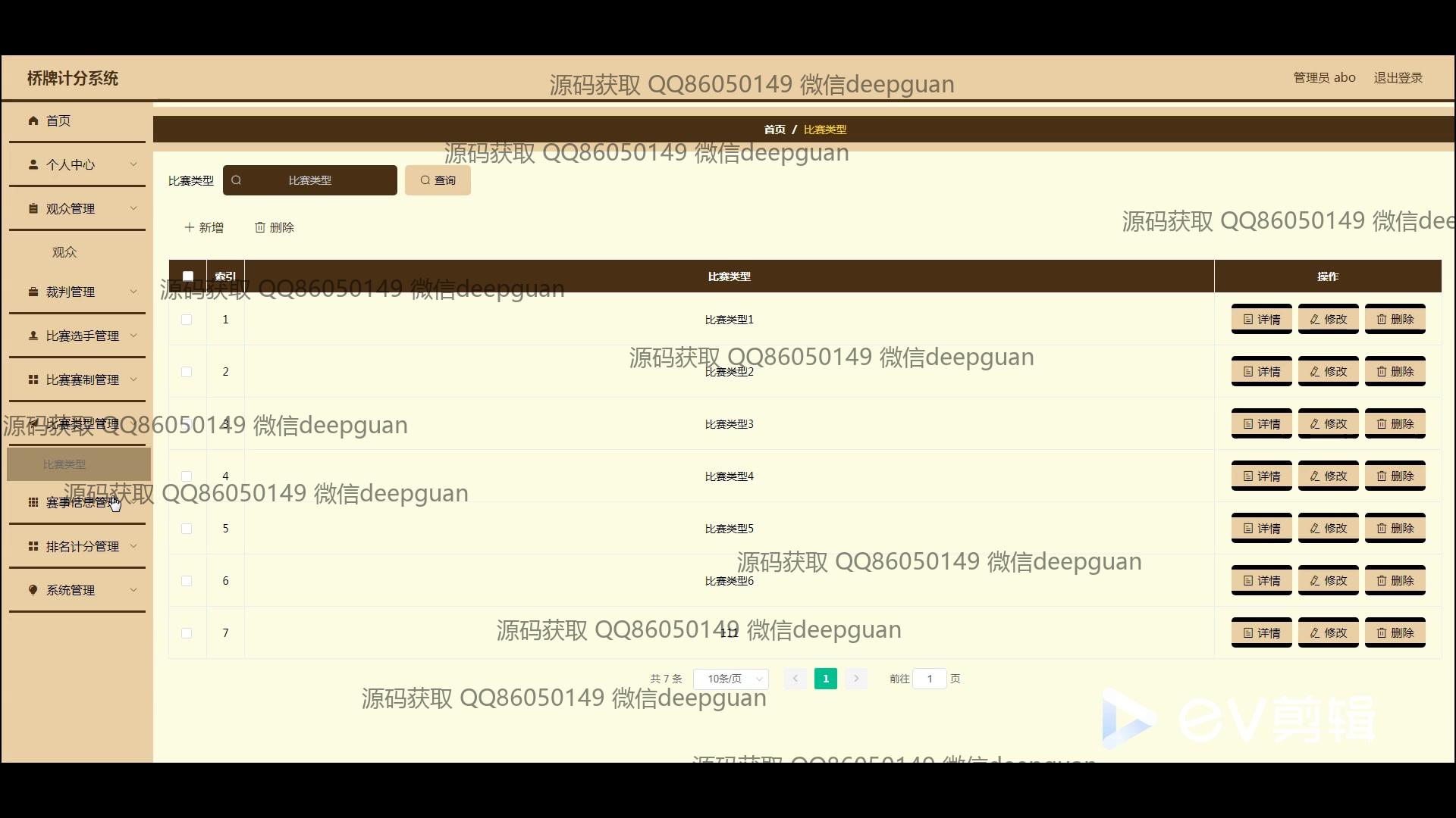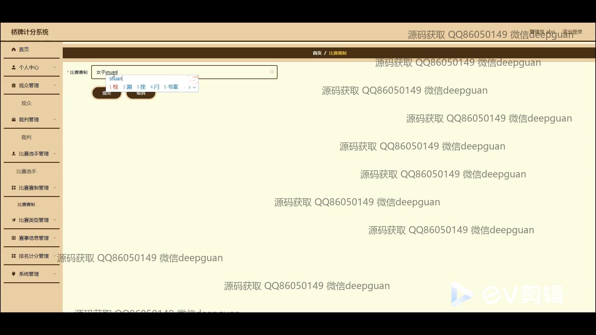 桥牌计分系统:角色分为管理员、用户;用户注册、信息管理、赛事管理、比赛计分、结果查询、分类导航。系统采用Spring Boot框架,界面简洁,操作便捷,支持多用户实时互动与数据分析。 --计算机毕业设计源码;毕设源码;java毕业设计源码