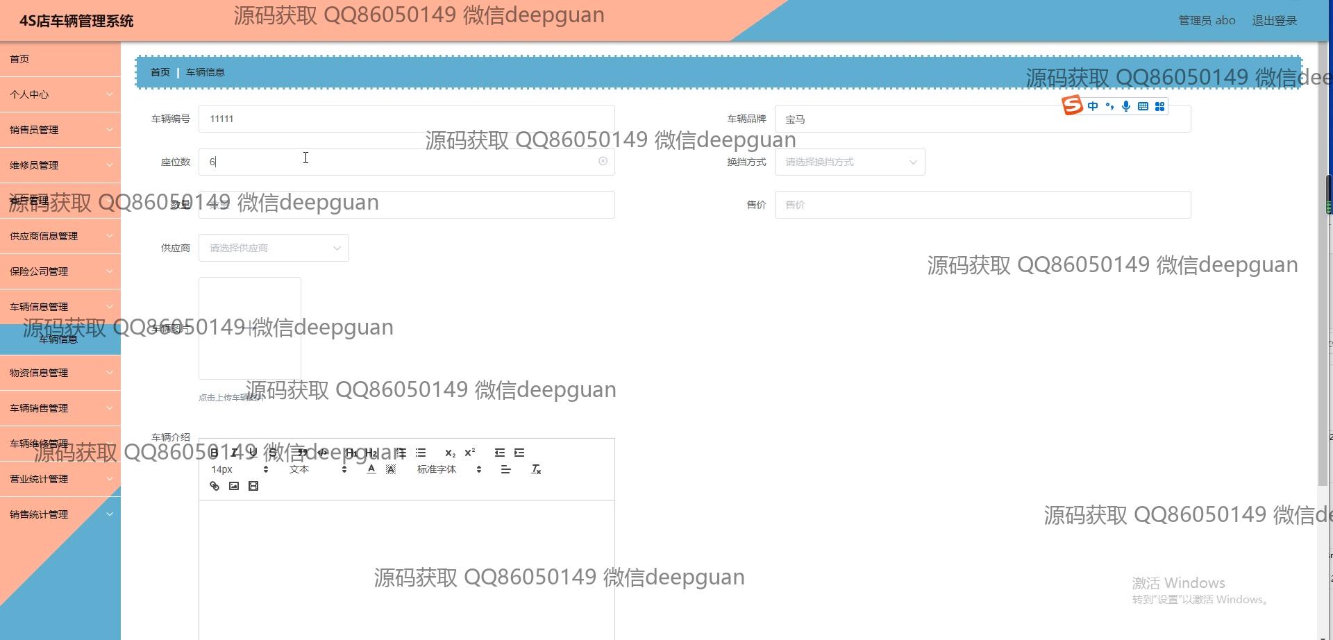 4S店车辆管理系统:角色分为管理员、销售员、维修员;功能覆盖车辆销售管理、客户管理、供应商信息管理、维修管理、保险管理及统计分析等,简化4S店日常运营。 --计算机毕业设计源码;毕设源码;java毕业设计源码