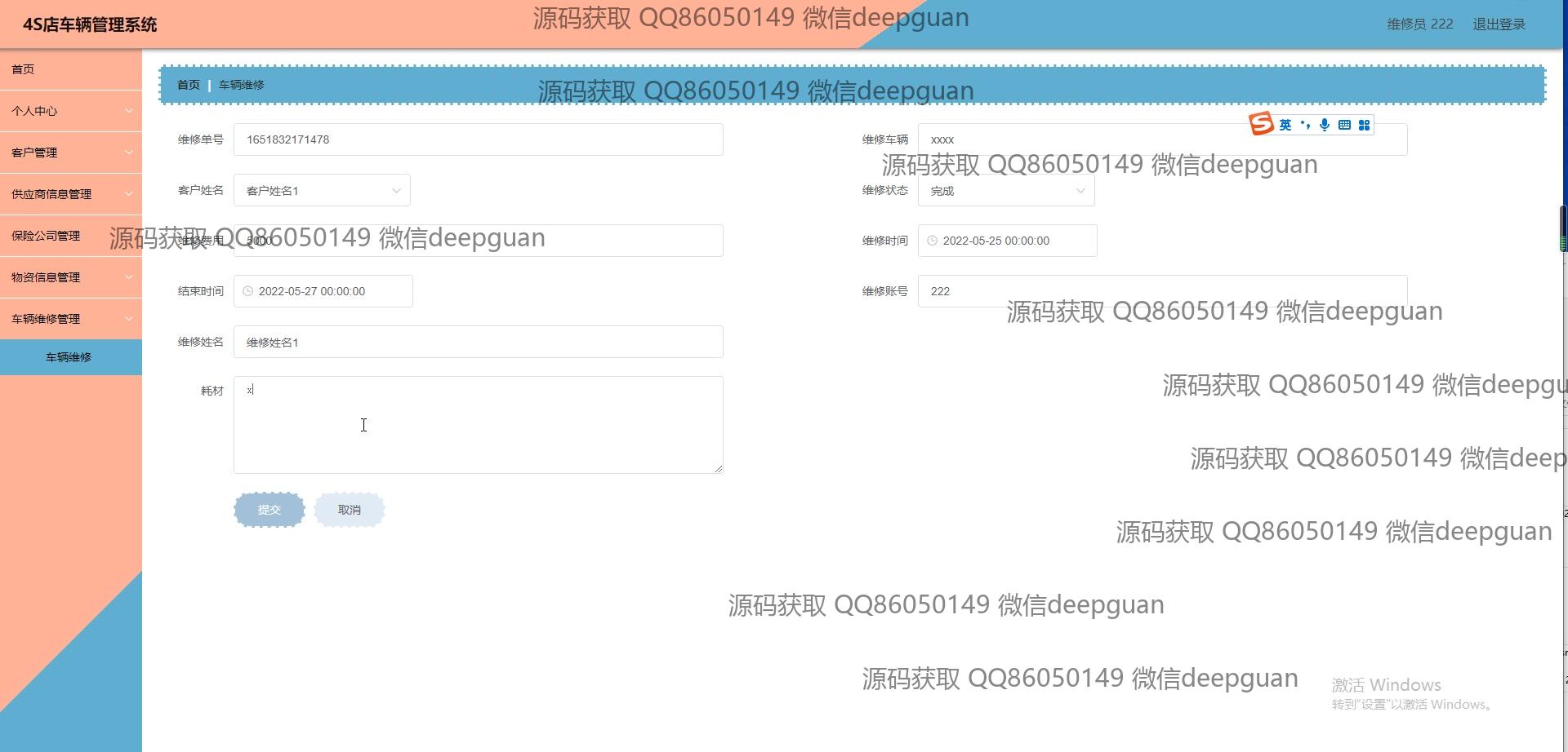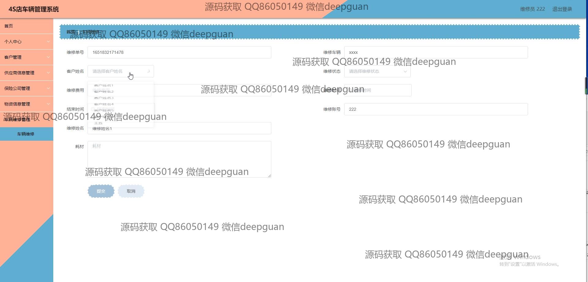 维修员:维修员可登录系统管理与车辆维修相关的数据,包括创建维修单、记录客户的维修请求和跟踪维修进度。维修员在系统中录入维修信息,例如费用、维修车辆及所需材料。维修信息可以方便地查询,并可以上传车辆图像或涉及物资的介绍,提供更为综合的管理方式。