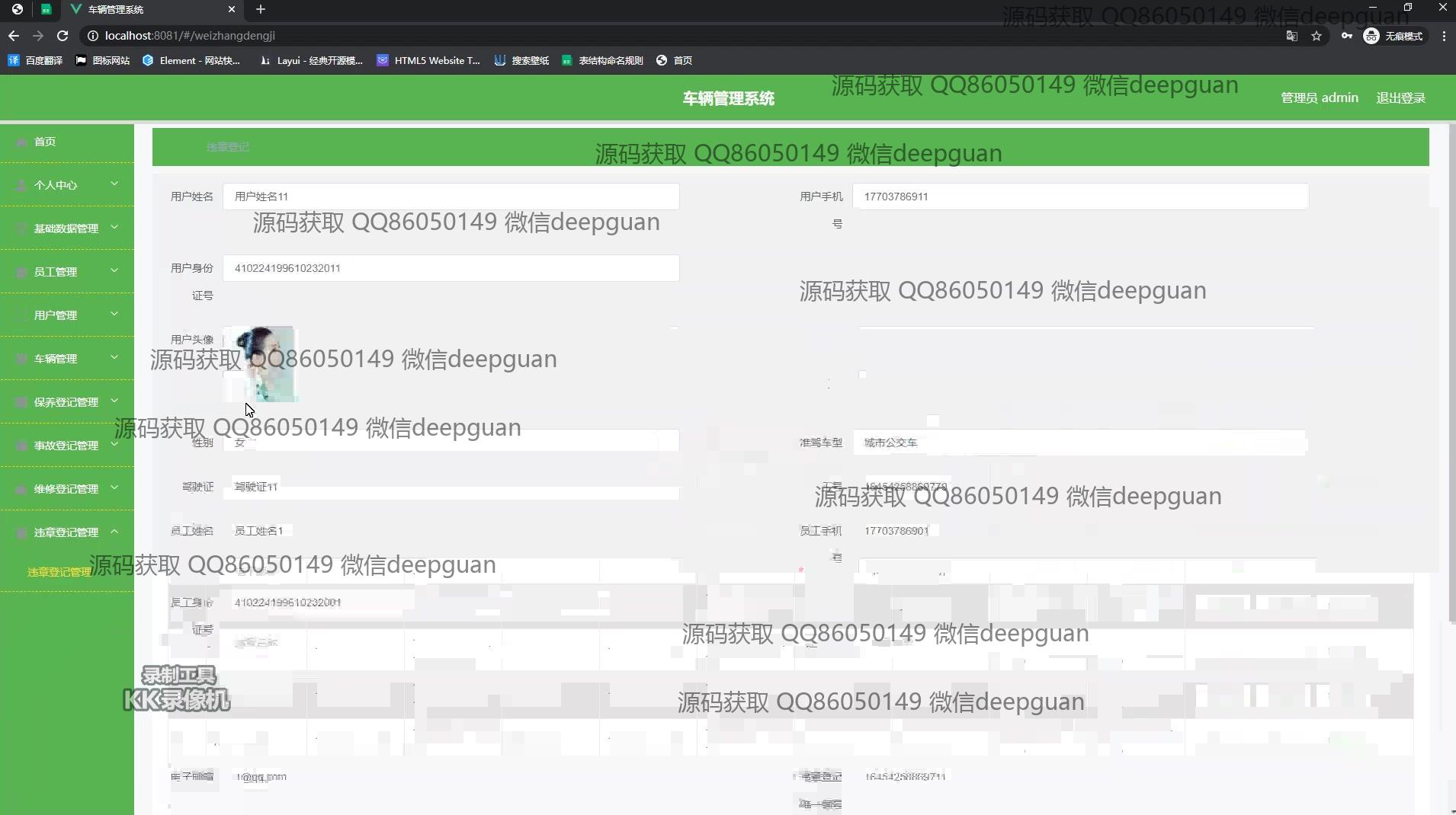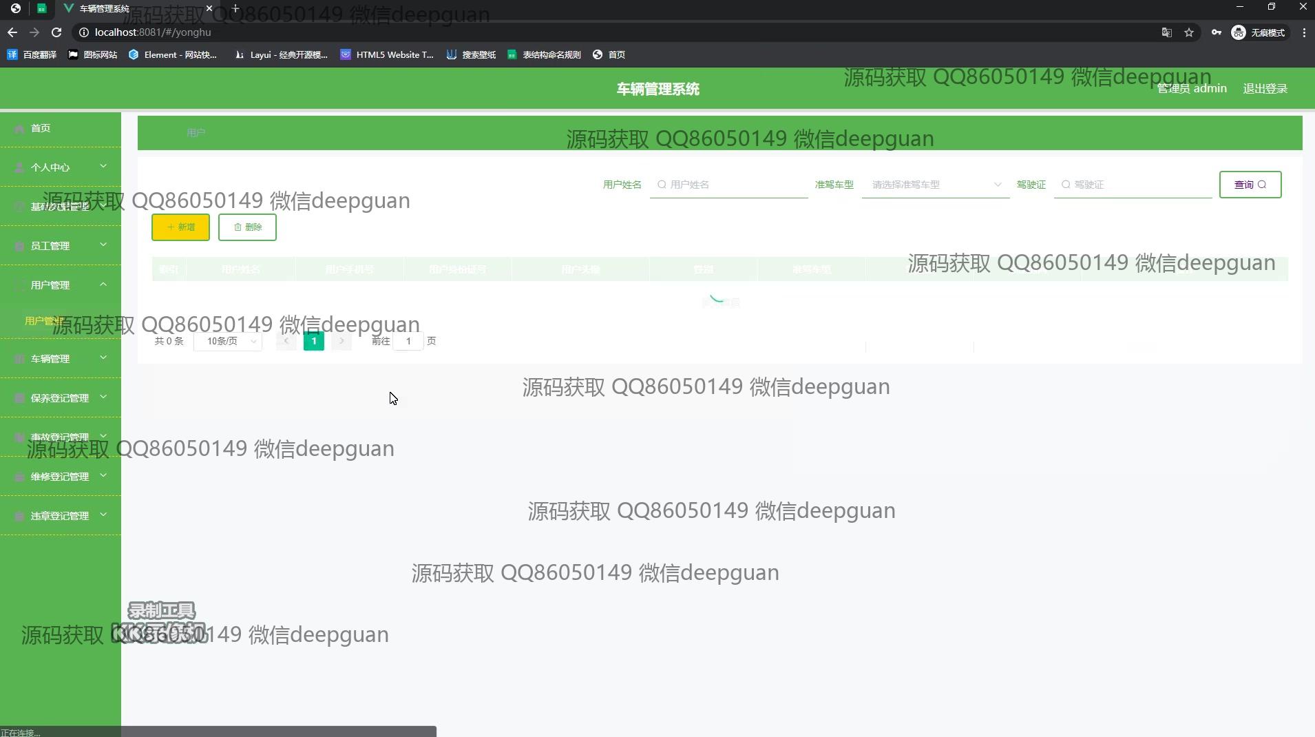 管理员:登录界面允许管理员身份验证,通过侧边栏访问个人中心、用户管理、车辆管理、违规登记管理等功能。管理员可以在车辆管理模块中添加、修改、删除车辆信息,并记录或编辑车辆的违规信息细节。用户管理页面提供对用户基本信息的编辑和查询操作,包括用户名、手机号、身份证号、电子邮箱等字段。违规登记管理模块支持查询、查看、修改和删除违规记录,并通过搜索功能筛选用户、手机号、车牌类型等信息。事故登记页面允许录入详细的事故情况,提升操作体验。