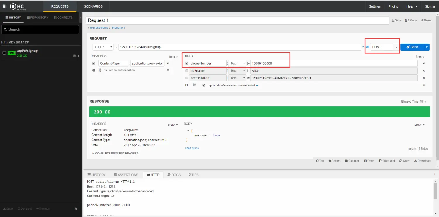 安装Chrome插件DHC,对相关接口进行测试,如: