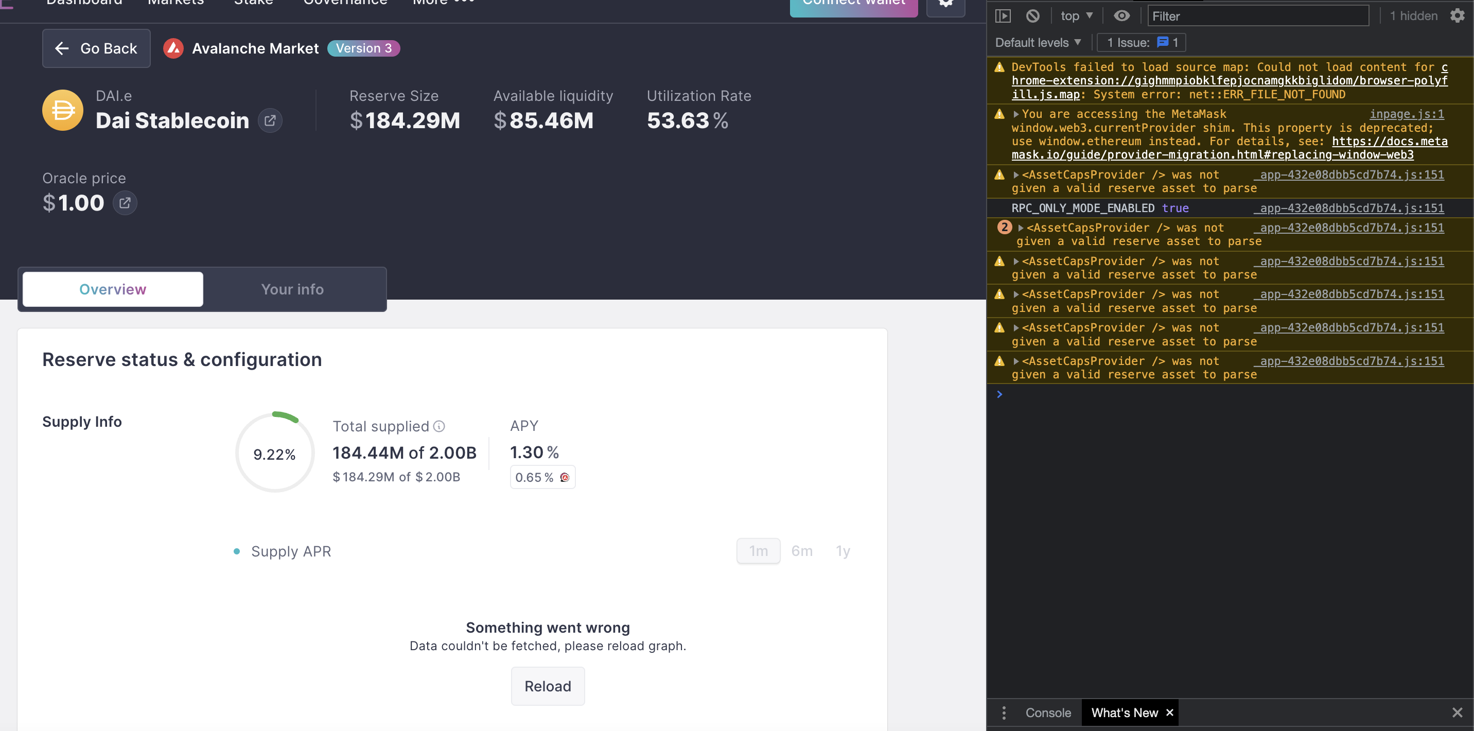 Disabled charts for Polygon V2 market while we investigate the issue on the API side. This avoids showing a non-functional reload button to users. @MareskoY Charts should now only be enabled for markets where we have data: ETH V2, ETH AMM V2, Avax V2. Other markets will be enabled as we add API support. |