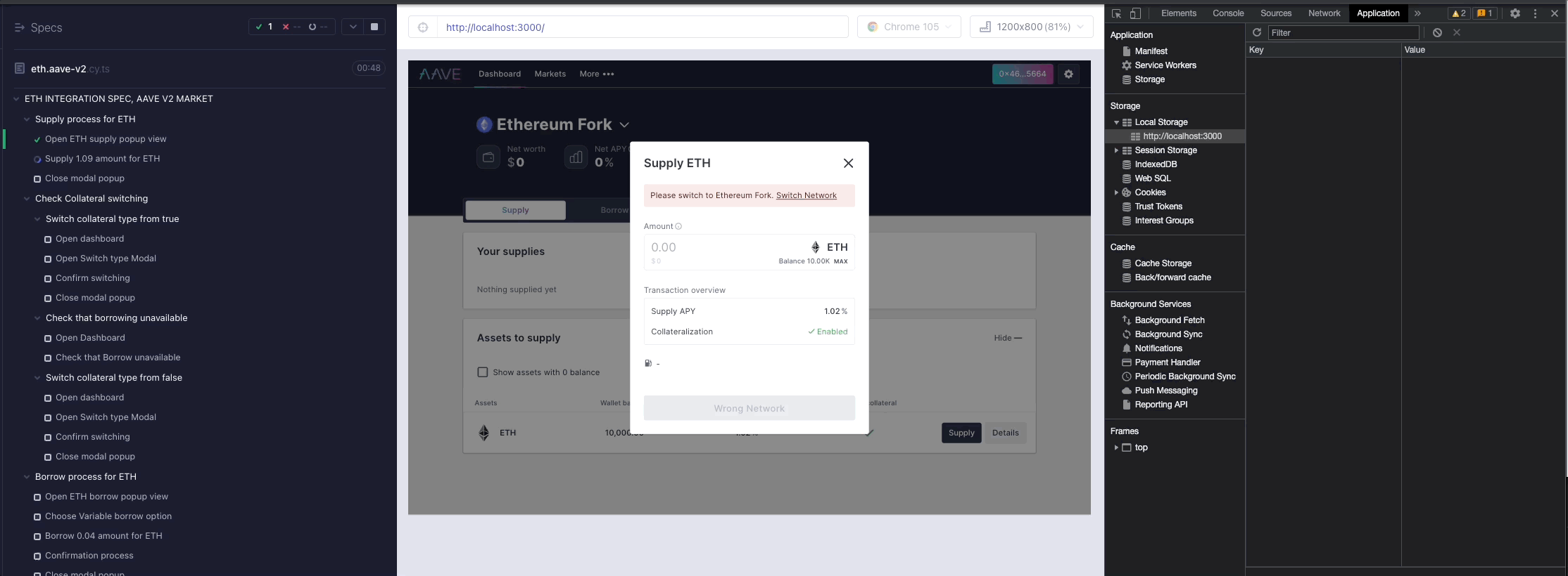 test failing because of the wrong network, how I see it's happening because of local storage refreshing to clean one after opening any modal looks like that ur changes somehow clean up the local storage of the app, what is wrong behavior |