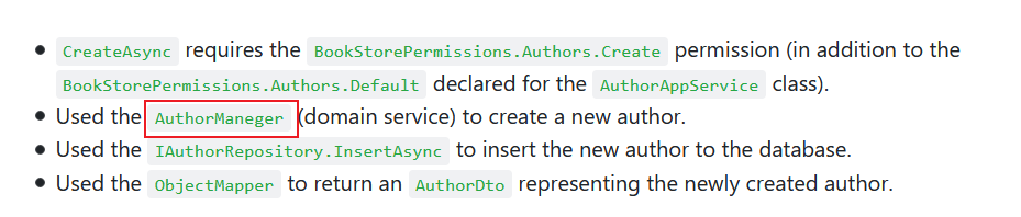 Documentation https://docs.abp.io/en/abp/latest/Tutorials/Part-8?UI=NG&DB=EF  It should be AuthorManager