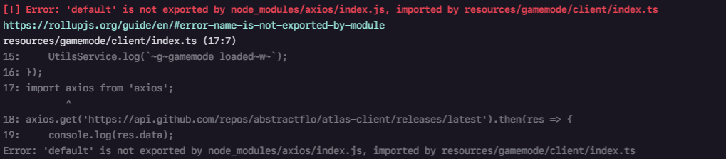 on my node js v14.18.1 and rollup ^2.60.0 axios was compile and work fine. but in atlas if I pass axios to convertNamedImports function it's do not😂 btw if remove this function my issues about import will gone true😁 |