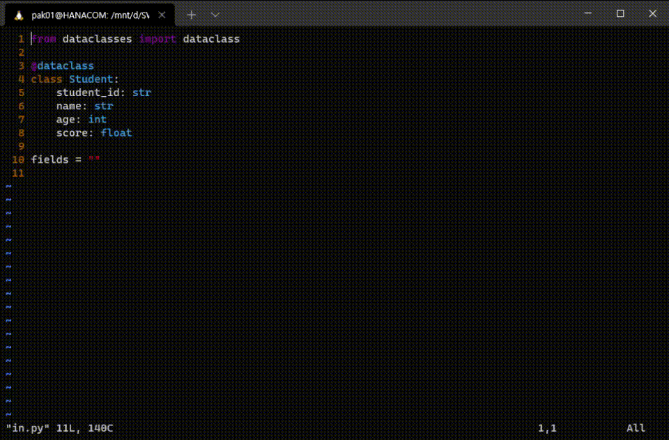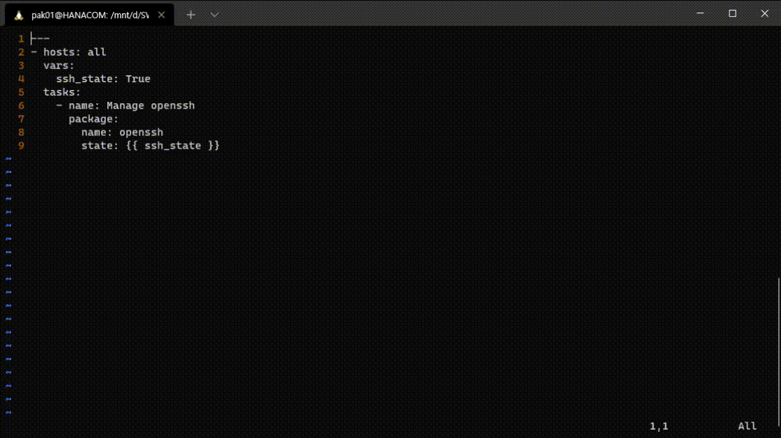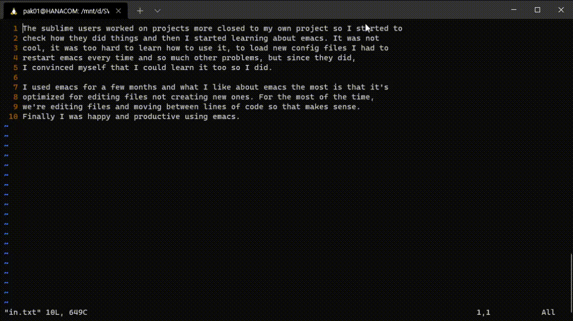 첫 번째 공백으로 이동 한 후 sublime 단어를 삭제하고 vim을 입력한다.