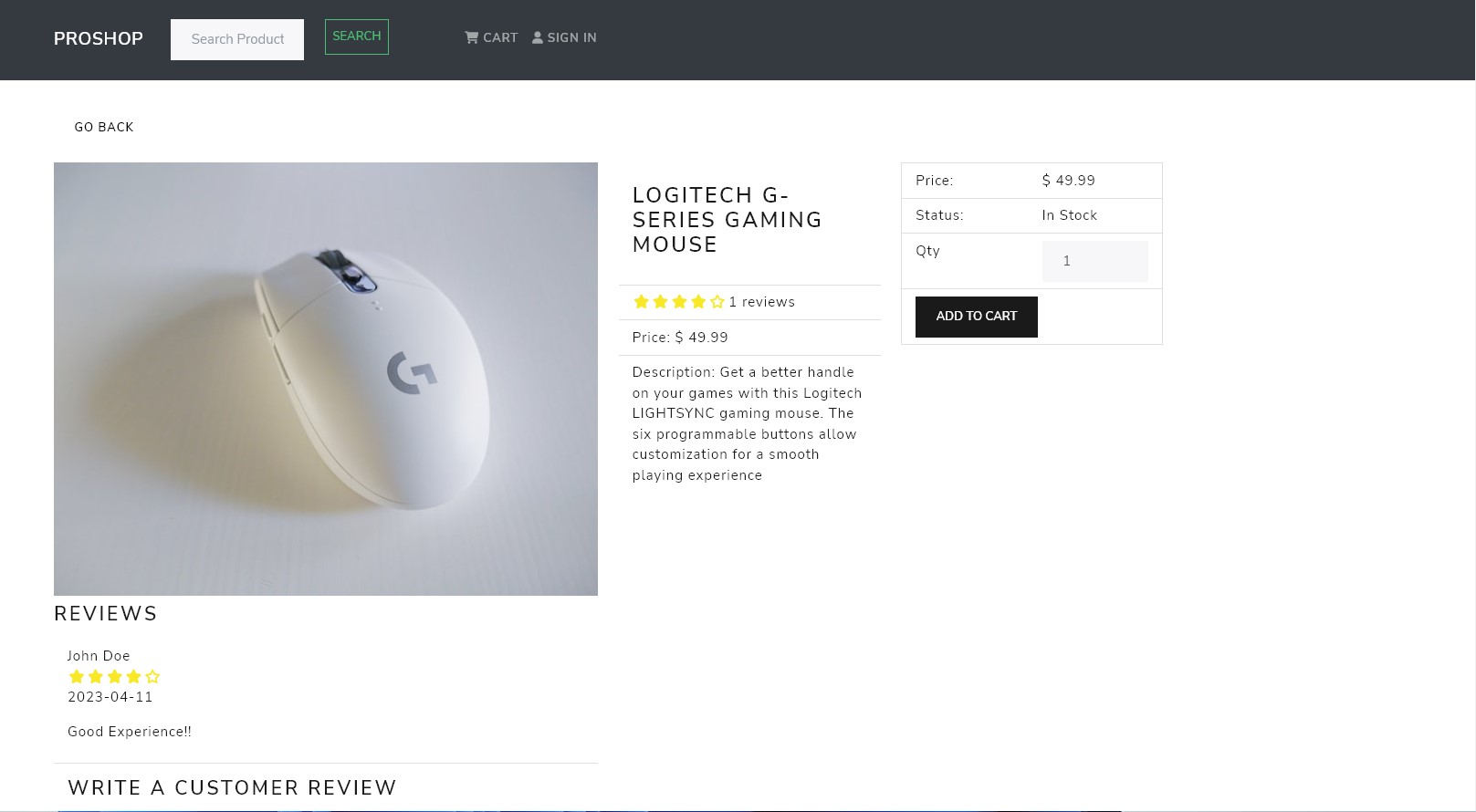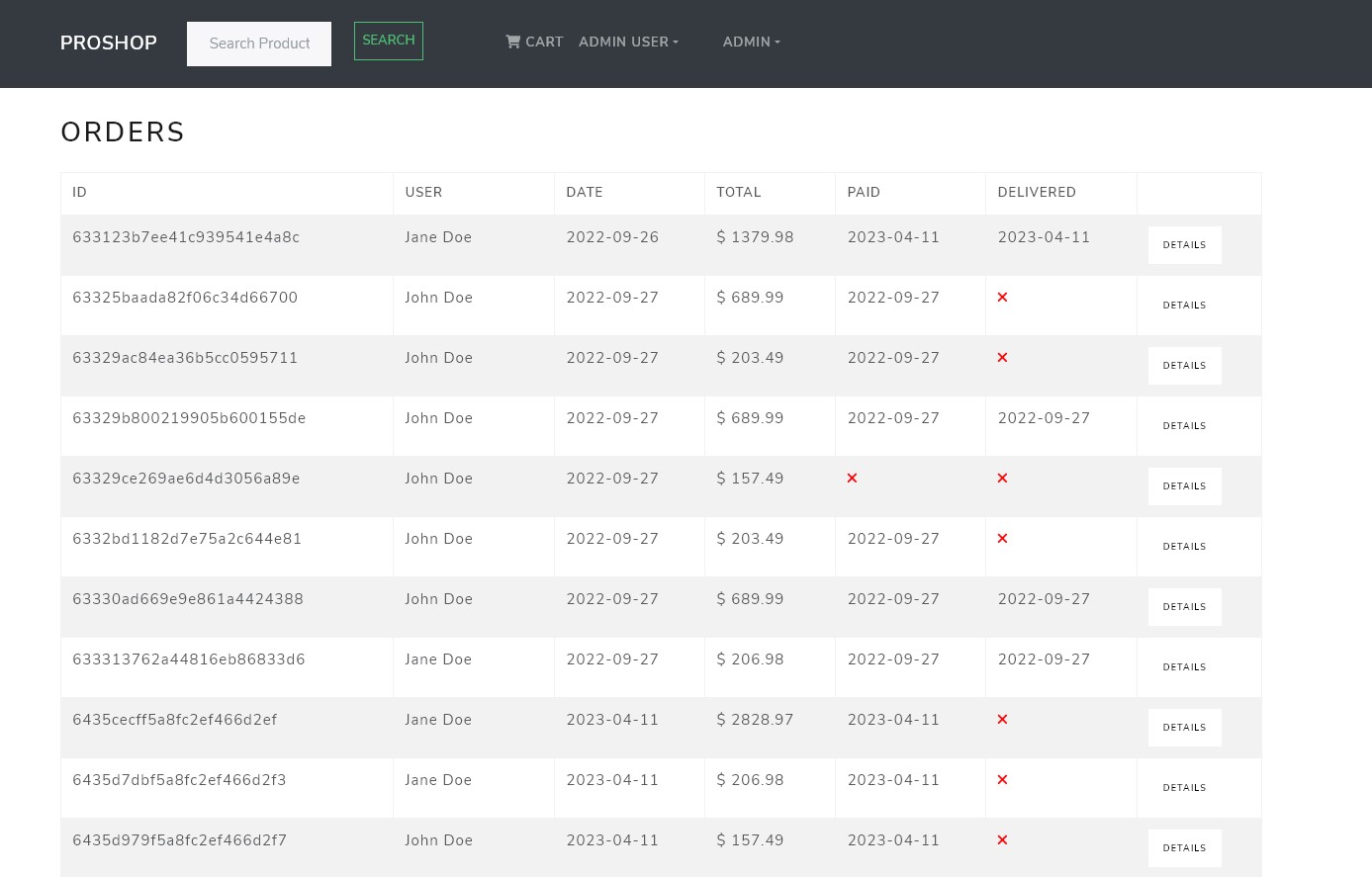 ProShop [Youtube link] https://youtu.be/5SoJ1pq1MEA Run Application: npm run dev Backend: //localhost:5000 Frontend: //localhost:3000 Home Screen Product Screen Payment Gateway Order Screen Order Screen Admin Order Screen