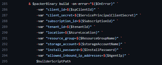 Do i just pass in the variables virtual_network_name, virtual_network_resource_group_name, and virtual_network_subnet_name to the command when calling the function GenerateResourcesAndImage without adding the variables to the script block above?