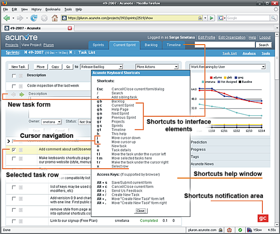 Acunote Shortcuts was extracted from Acunote, an online project management application for Scrum, XP, Agile and common sense.