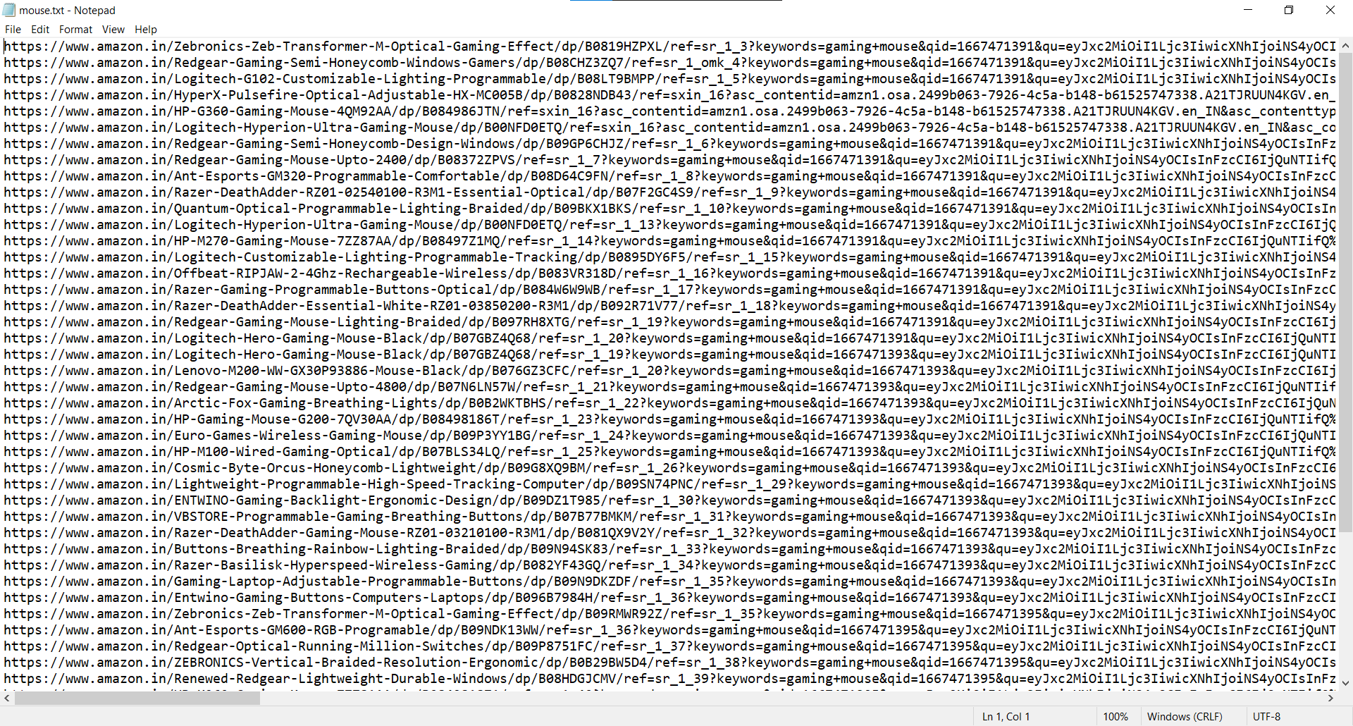 - search_results.py - Search Term as input and txt file of links of listed Products as Output.