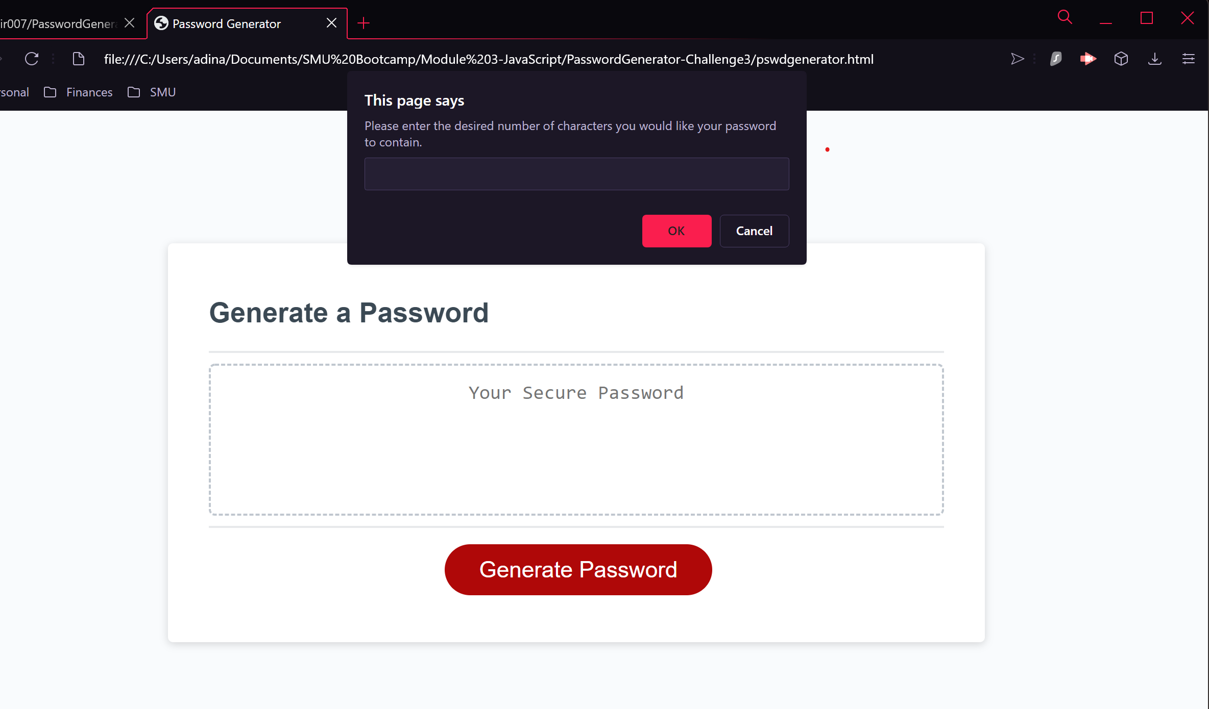 Deployed Application Link: https://adinair007.github.io/PasswordGenerator-Challenge3/pswdgenerator.html