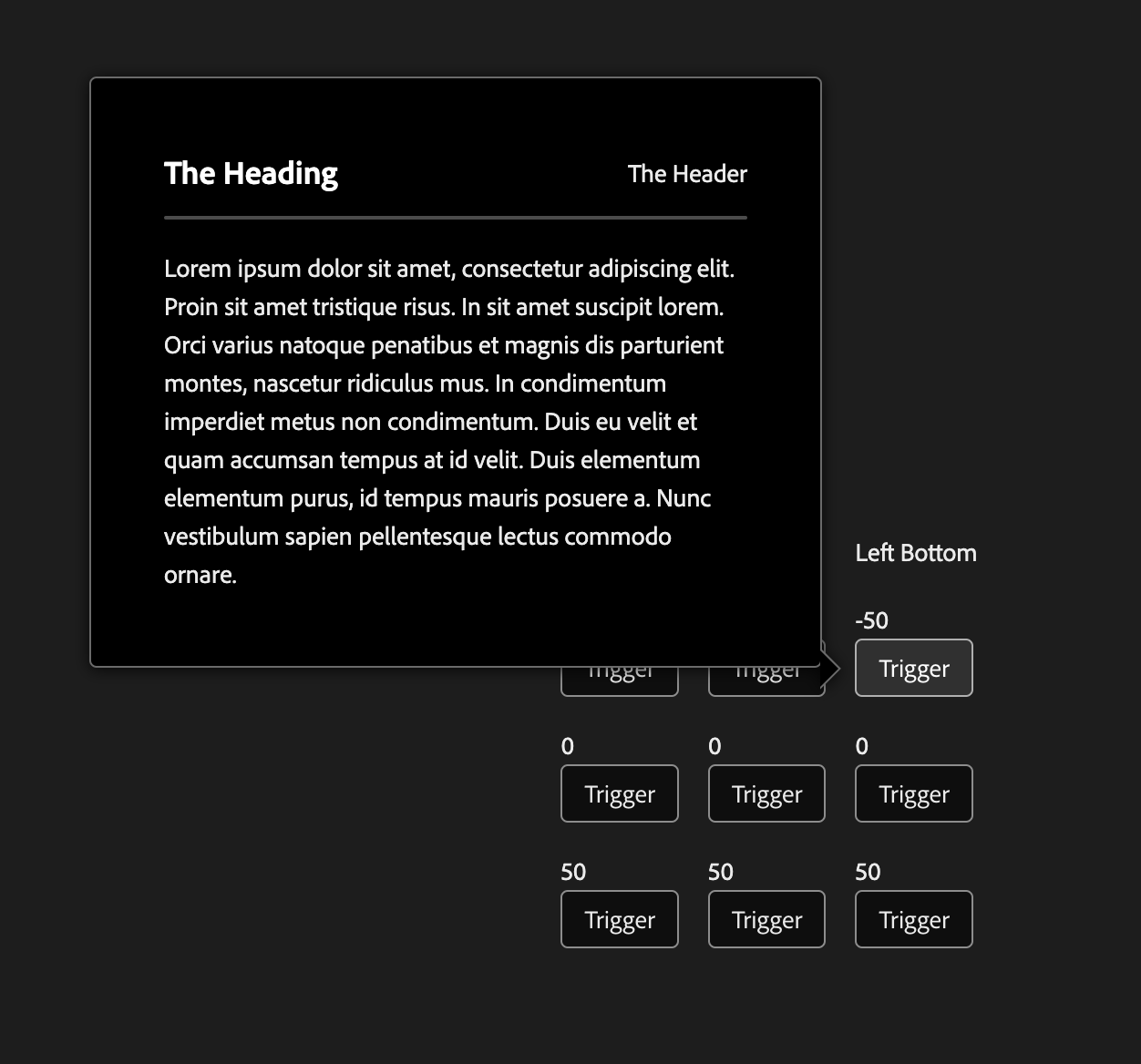 I tried doing the storybook path=/story/dialogtrigger--crossoffset-examples