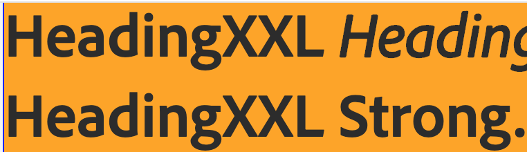 @bernhard-adobe please make sure that all font weights are included in the Typekit for Spectrum-CSS. It appears that weights heavier than bold are not included. This screenshot shows Heading XXL default (top) and Heading XXL Strong (bottom). By default, Heading is bold (font weight 700), but for Looks like this issue exists for the current typography as well. The font weights we need to support are: In DNA, we have them specified with the following numbers, which correspond to CSS font weight numbers.